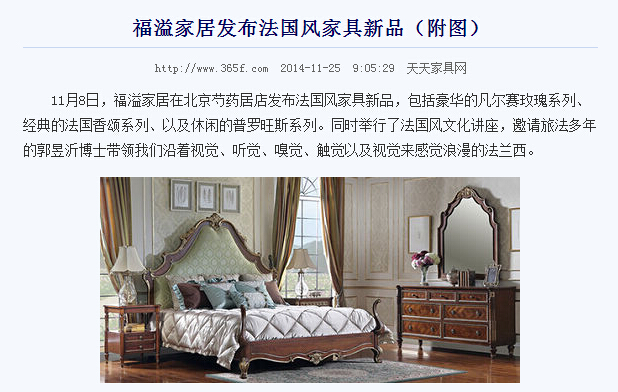 福溢家居發(fā)布法國風(fēng)家具新品