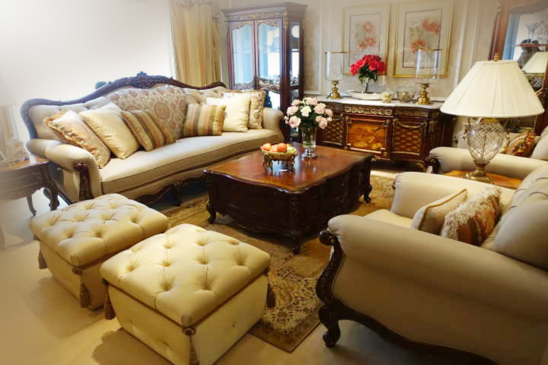 讀懂富豪崇尚尊貴品位、舒適體驗的生活追求,從法國金碧輝煌的凡爾賽宮捕捉宮廷家具的設(shè)計靈感,用細膩的實木鑲嵌及描金工藝打造豪宅應(yīng)有的奢華氣派。