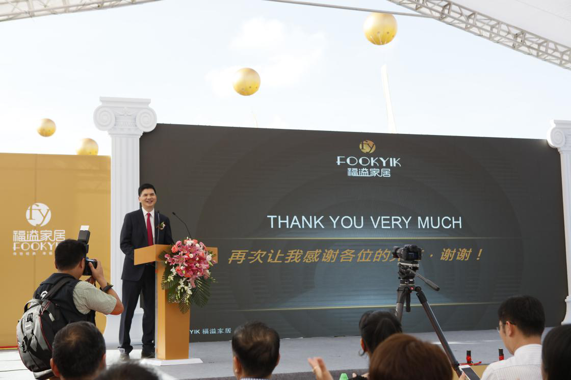 中山市家具商會會長吳赤宇先生致辭時表示福溢家居將歐美的頂級產品引入中山,是行業的標桿,中山旗艦店的開業標志著福溢家居在國內市場上開創上又跨出去一大步。