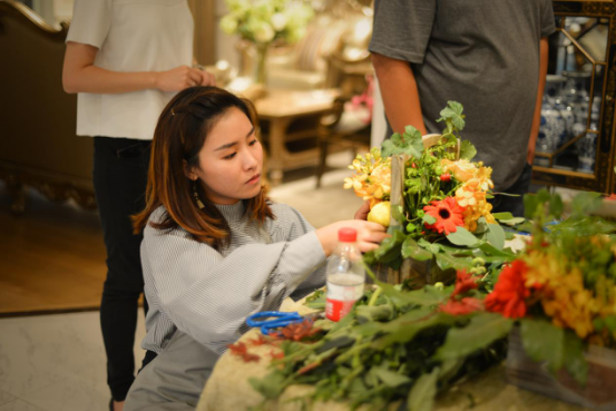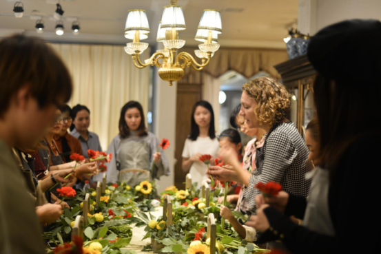 活動參與者在花藝師Carole Delavelle的指導下認真學習,在輕松愜意的插花過程中尋找生活的靈感,放下平日的繁忙,感受生命的覺醒與回歸。