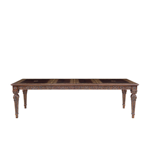 * 以現(xiàn)位于美國(guó)白宮中象征友誼和權(quán)力的堅(jiān)毅桌(英語(yǔ):Resolute desk)為設(shè)計(jì)意念, 實(shí)木雕刻與貼銀箔工藝相結(jié)合, 散發(fā)高貴典雅的氣息;舒適的軟包設(shè)計(jì),演繹超脫塵俗的藝術(shù)美。