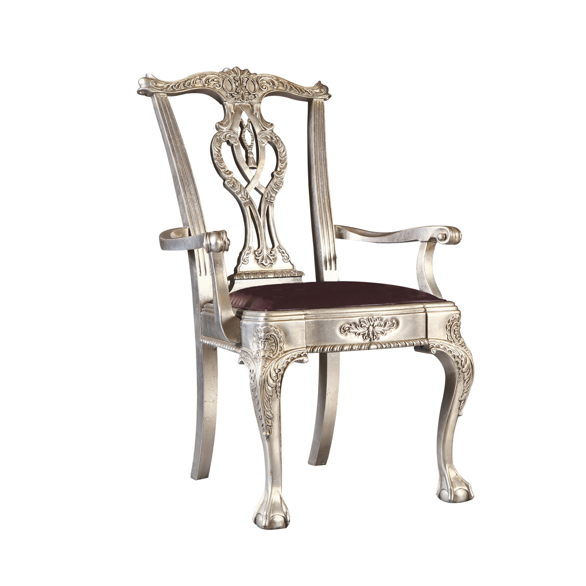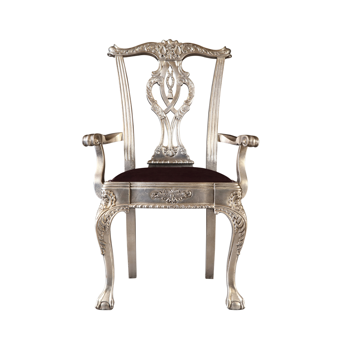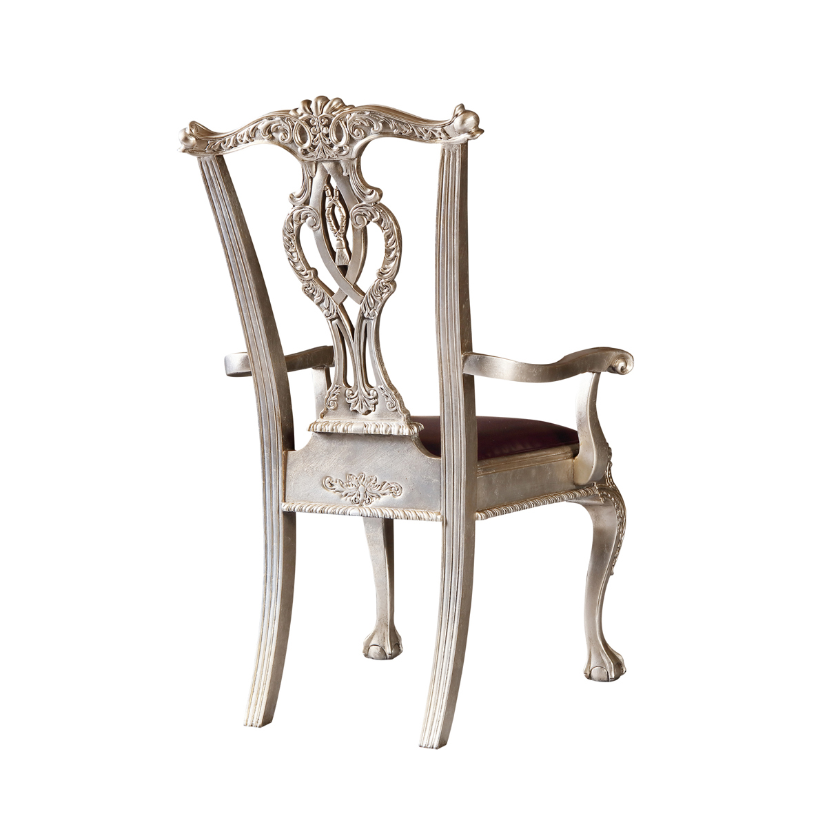 * 以明式家具為藍本的 Chippendale(齊彭代爾式)鏤空椅背和與卷葉雕刻結(jié)合的獸抓球彎腿設(shè)計, 表達美國對英國潮流和中國文化的向往; 配以過百款布藝和皮革選擇, 讓傳統(tǒng)風(fēng)格充滿獨特性, 是豪華系列溫莎堡英式扶手椅的特色。