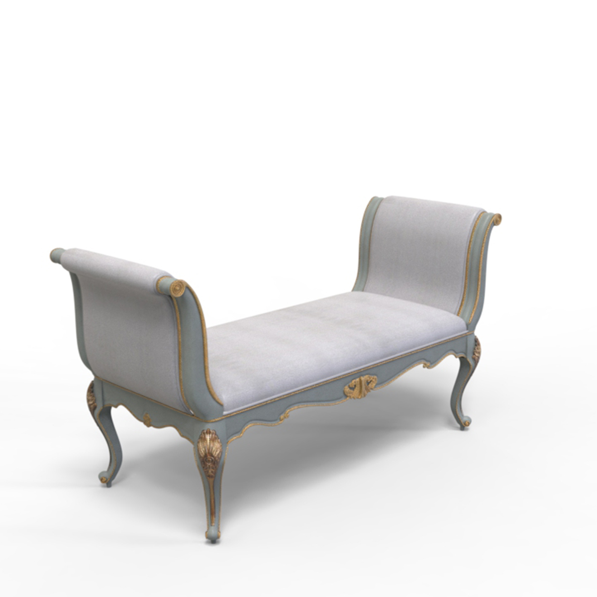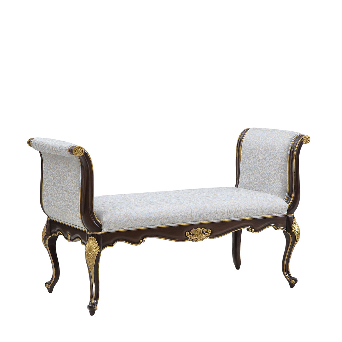 * 動感的S形腿與曲線扶手,搭配細膩多樣的手工雕刻,完美演繹了18世紀以意大利宮廷為中心的巴洛克風潮。放置在臥室,確是一抹華麗浪漫的風景線。