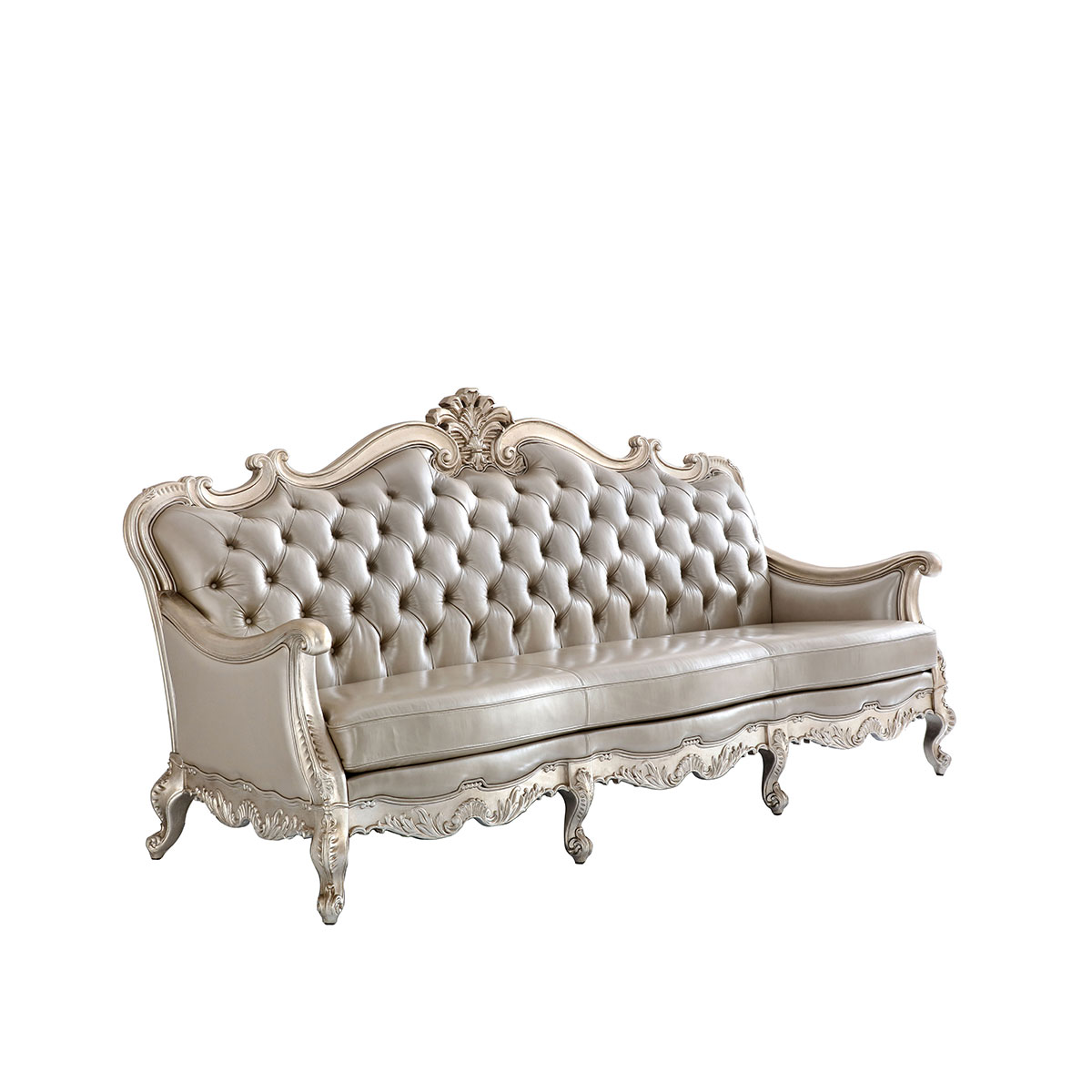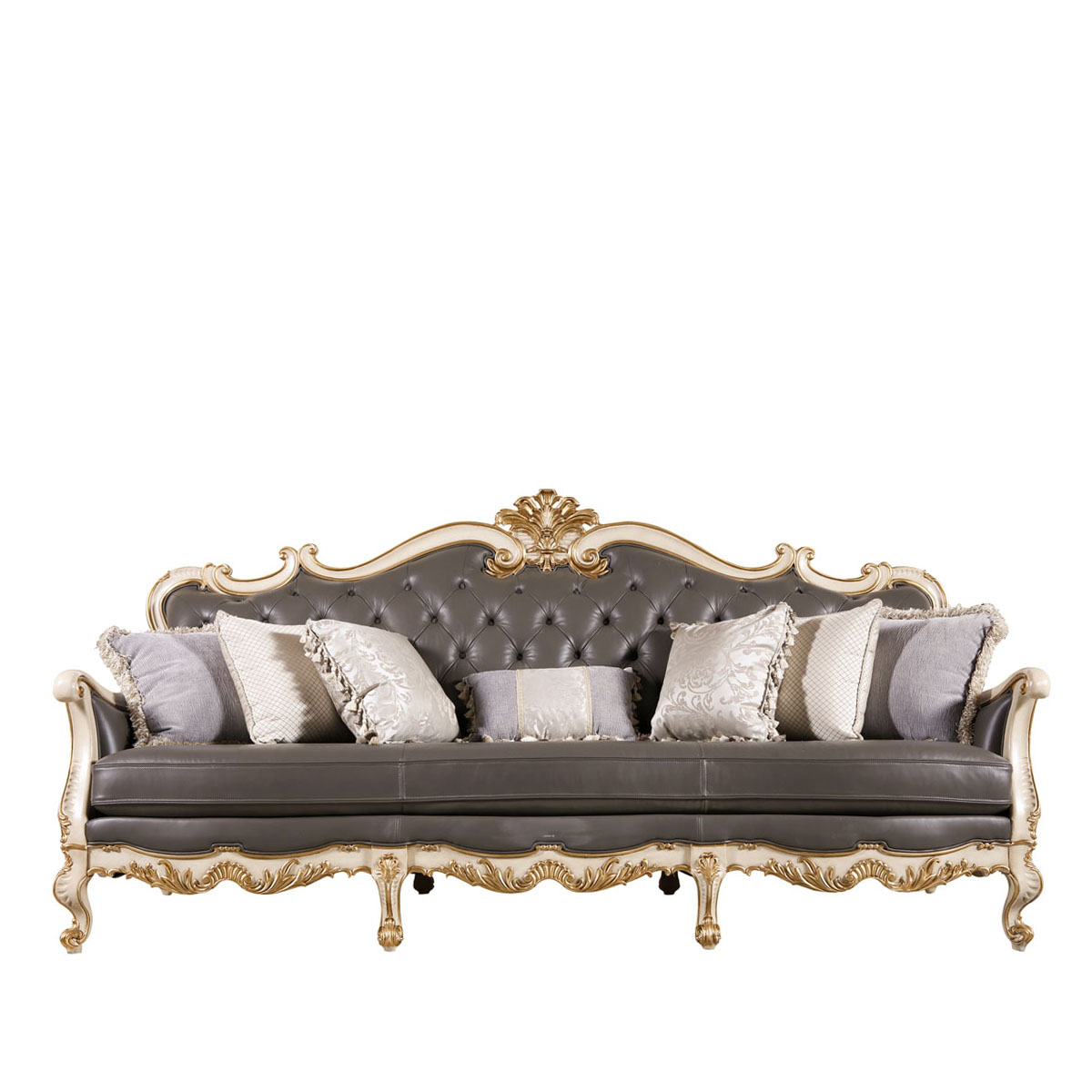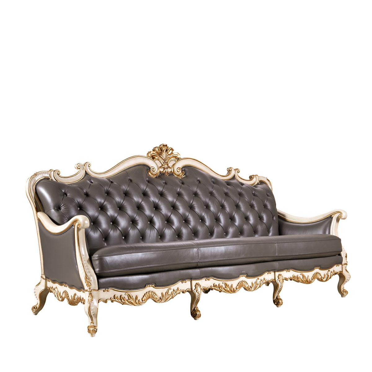 意大利維羅納沙發根據意大利宮殿造型設計,線條優美,結構穩固,采用光澤溫潤的珠光皮材質,配上寶石鈕扣的裝飾,非常高貴典雅。靈動優美的山羊腳表現出力度與跳躍時的曲線美,帶來維羅納迷人氣息。