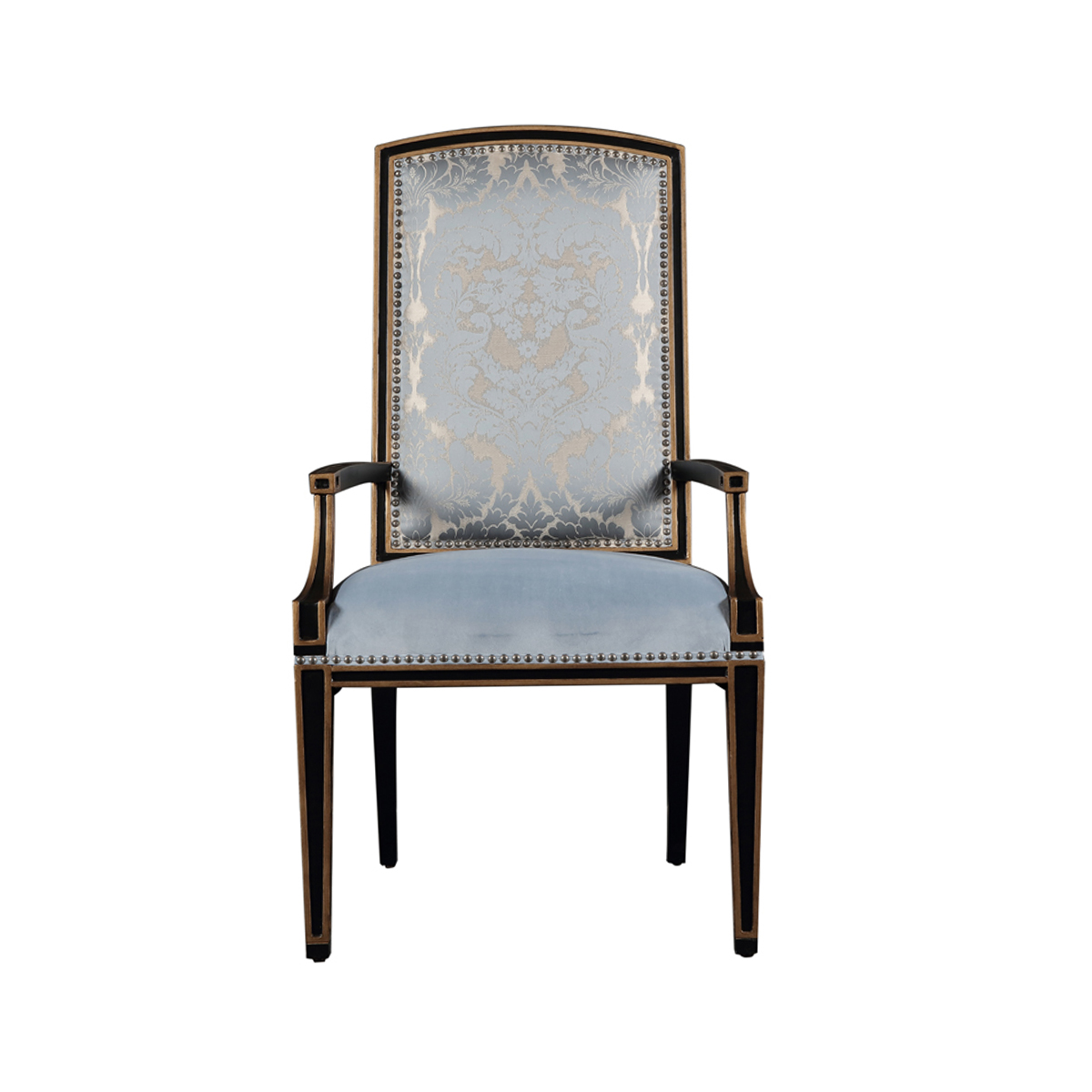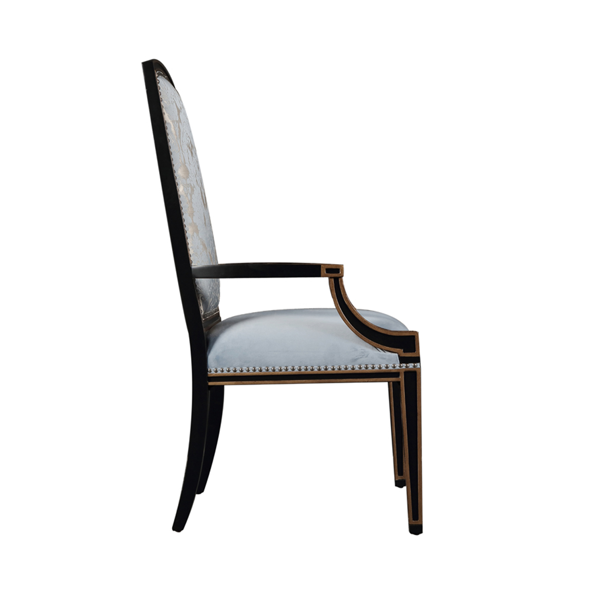 英吉利扶手餐椅用藍(lán)灰色為主色,搭配少量黑色木質(zhì)邊框,質(zhì)感突顯,高貴典雅;藍(lán)灰色軟裝截取一半藍(lán)色的沉穩(wěn),一半灰色的質(zhì)感,成為另類失重的色彩表達(dá)。讓餐廳氣質(zhì)瞬間up!