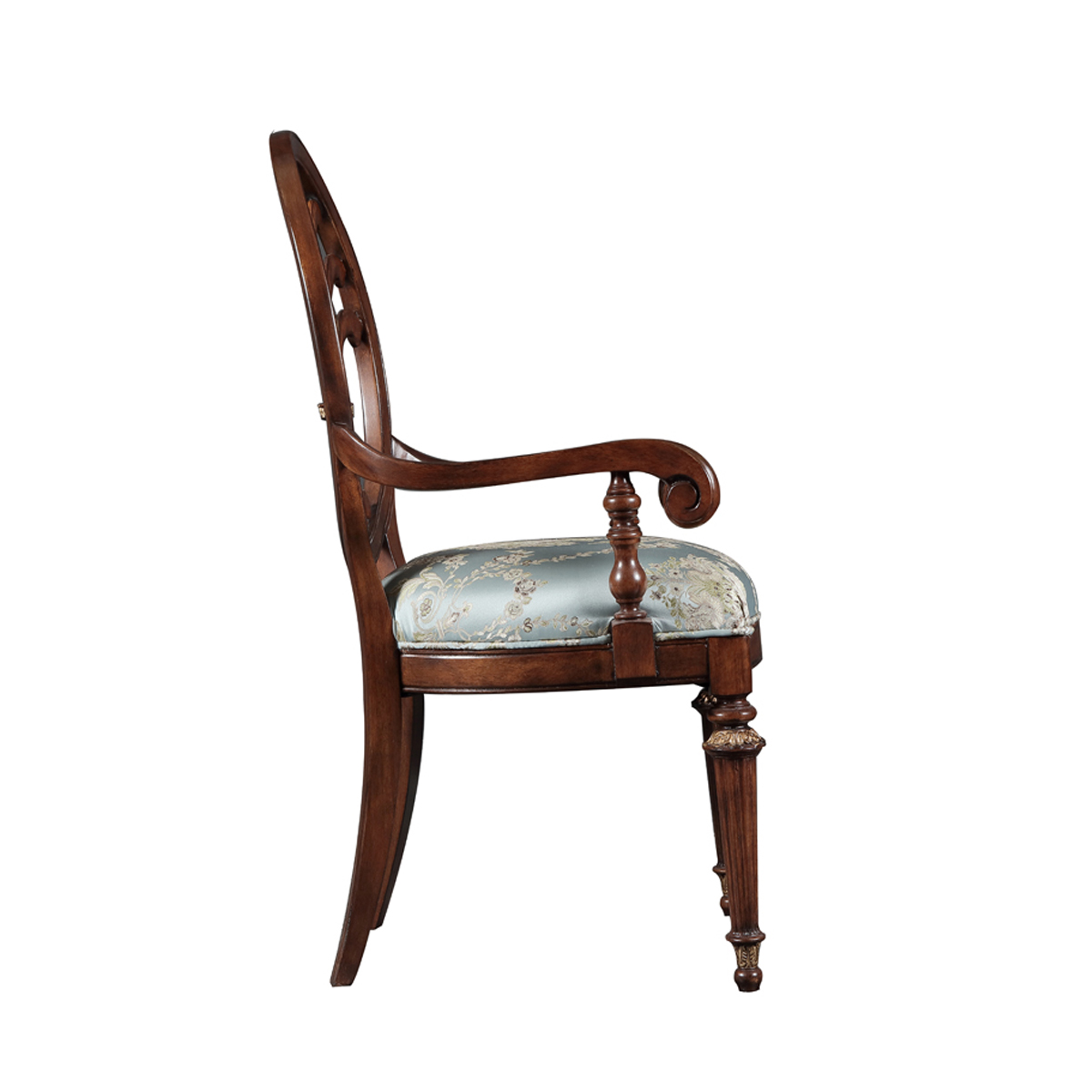 * 以意大利的宮廷家具和羅馬的古建筑為元素,使用錐形的腿腳設(shè)計(jì)、精致的手工雕刻細(xì)節(jié)和描金工藝結(jié)合,顯示王權(quán)的穩(wěn)固地位;配以對(duì)稱的棕櫚葉和麥穗雕刻裝飾椅背、色彩豐富的布藝面料和厚實(shí)柔軟的填充物是豪華系列翡冷翠 意式單椅的特色。