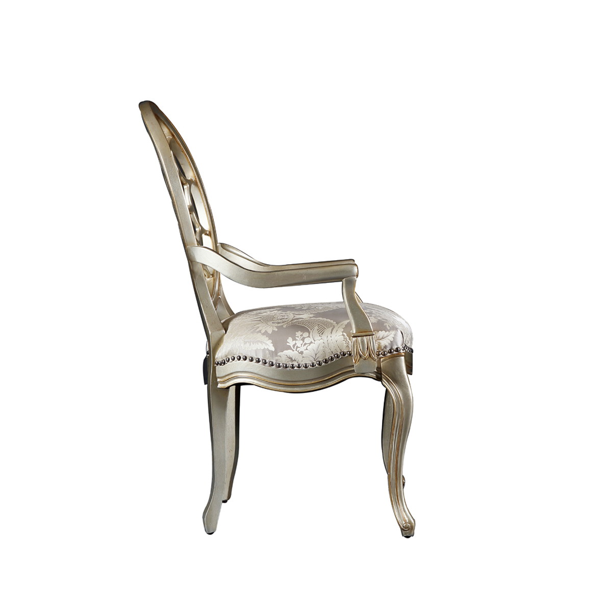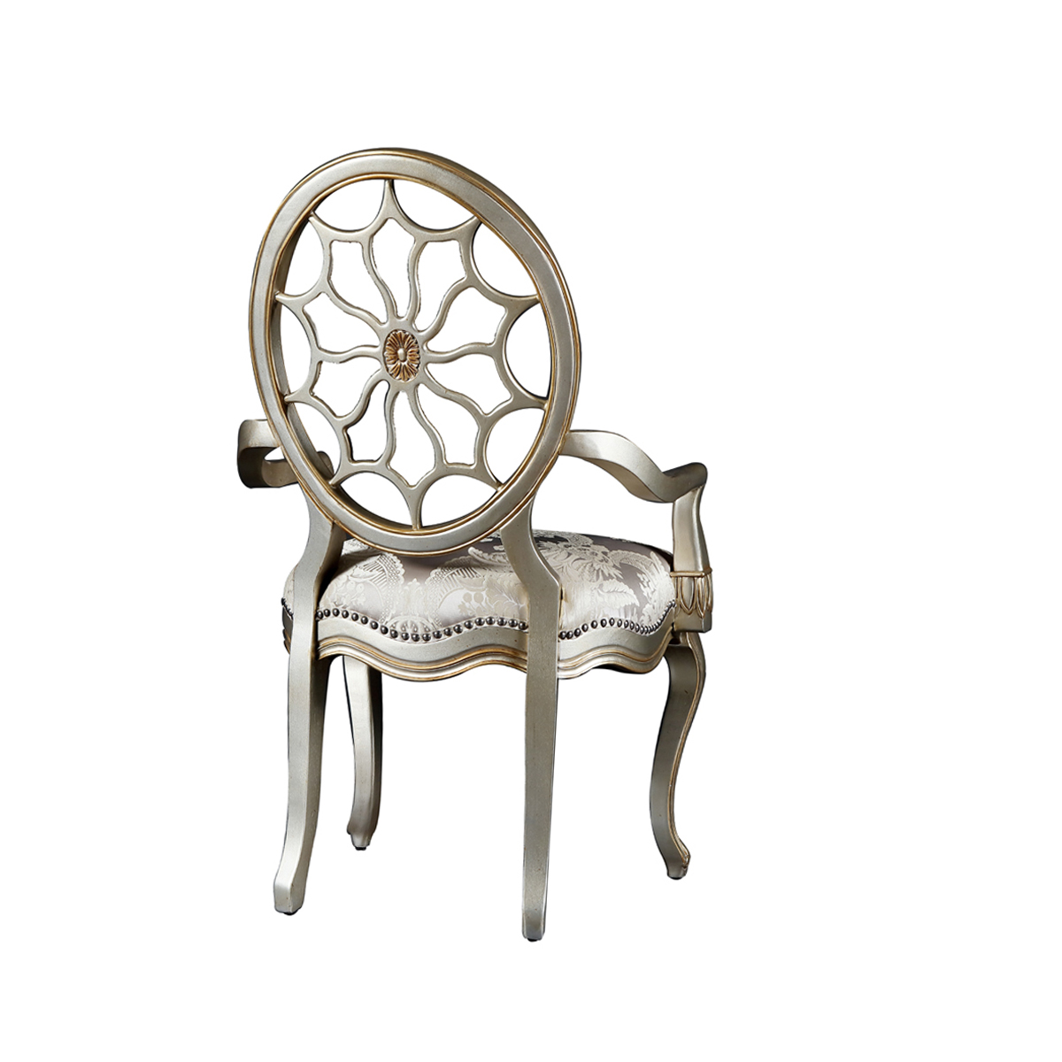 * 參考喬治三世時期的古董造型設計,使用輪子構造椅背和安妮王后腿,配以精致的手工雕刻細節和涂金工藝、布藝面料和厚實柔軟的填充物,是豪華系列凡爾賽玫瑰法式扶手椅的特色。