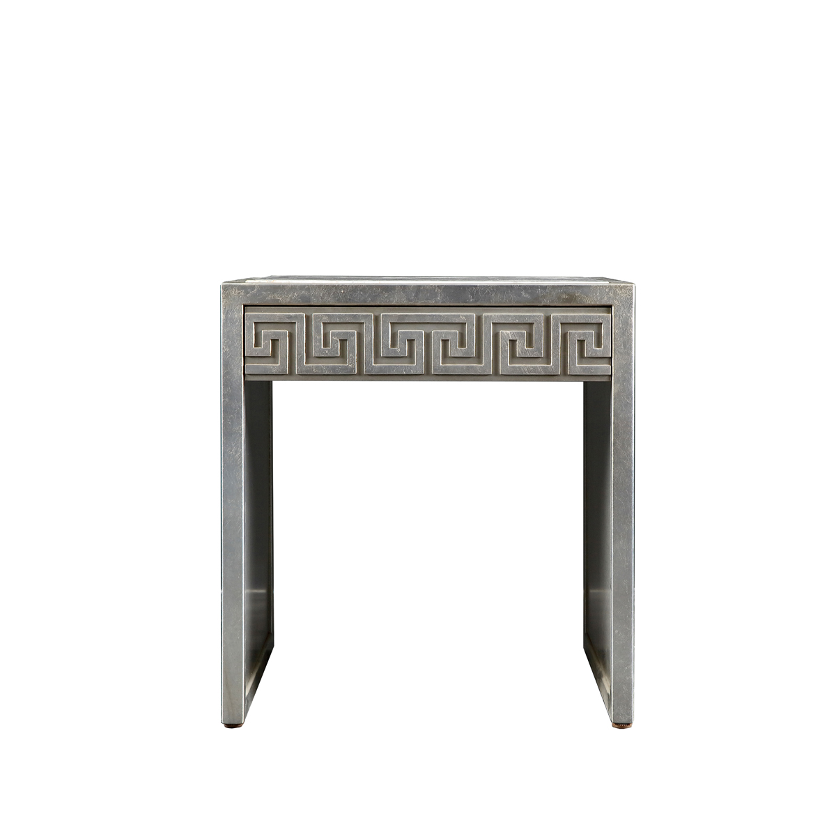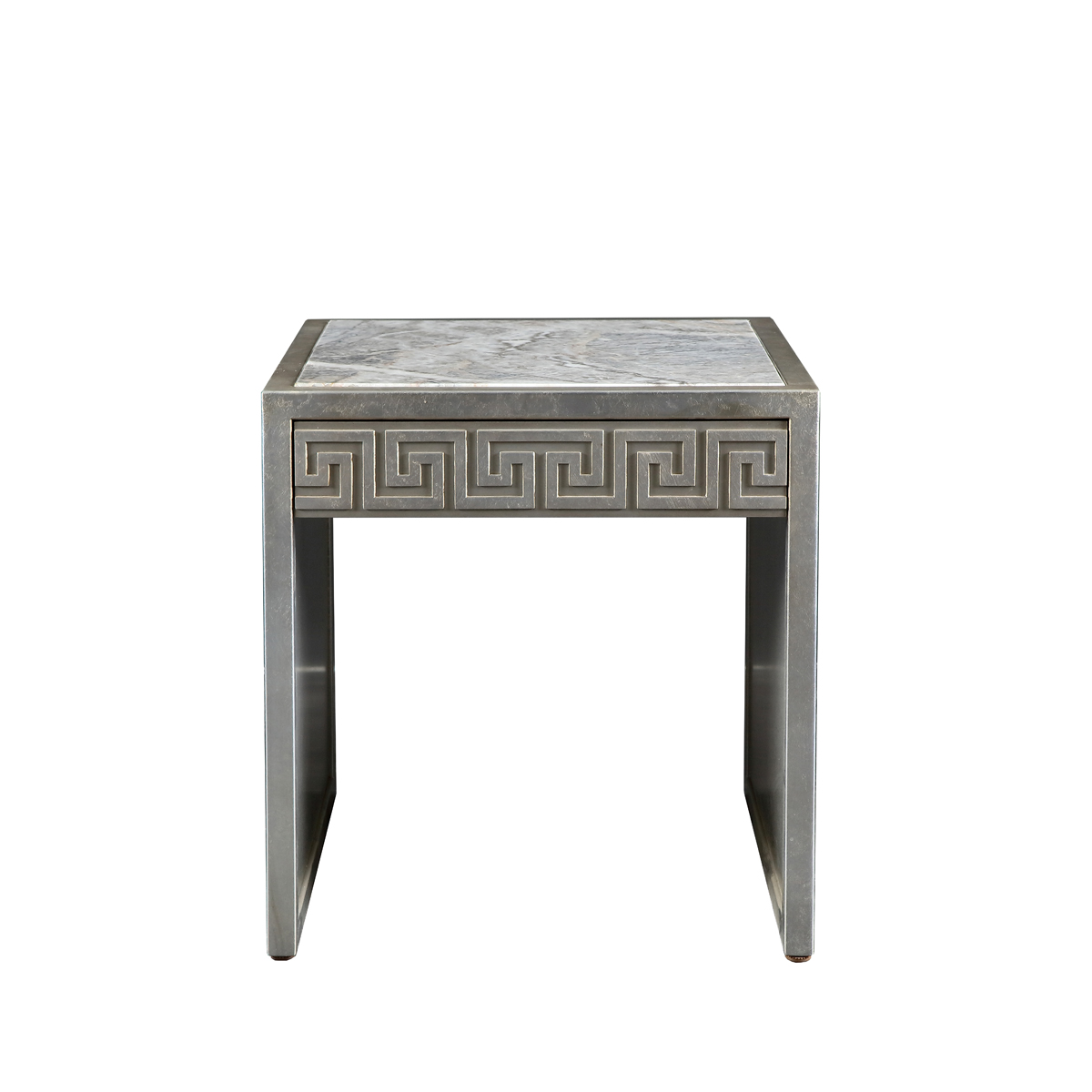 一體式高架方燈臺,以來回往復的希臘回紋修飾,增強層次質感;飾面的大理石溫潤通透,紋理清晰,在冷炫復古的高級銀中不失溫度;在米蘭新風尚中重現18世紀中的新古典主義風情。