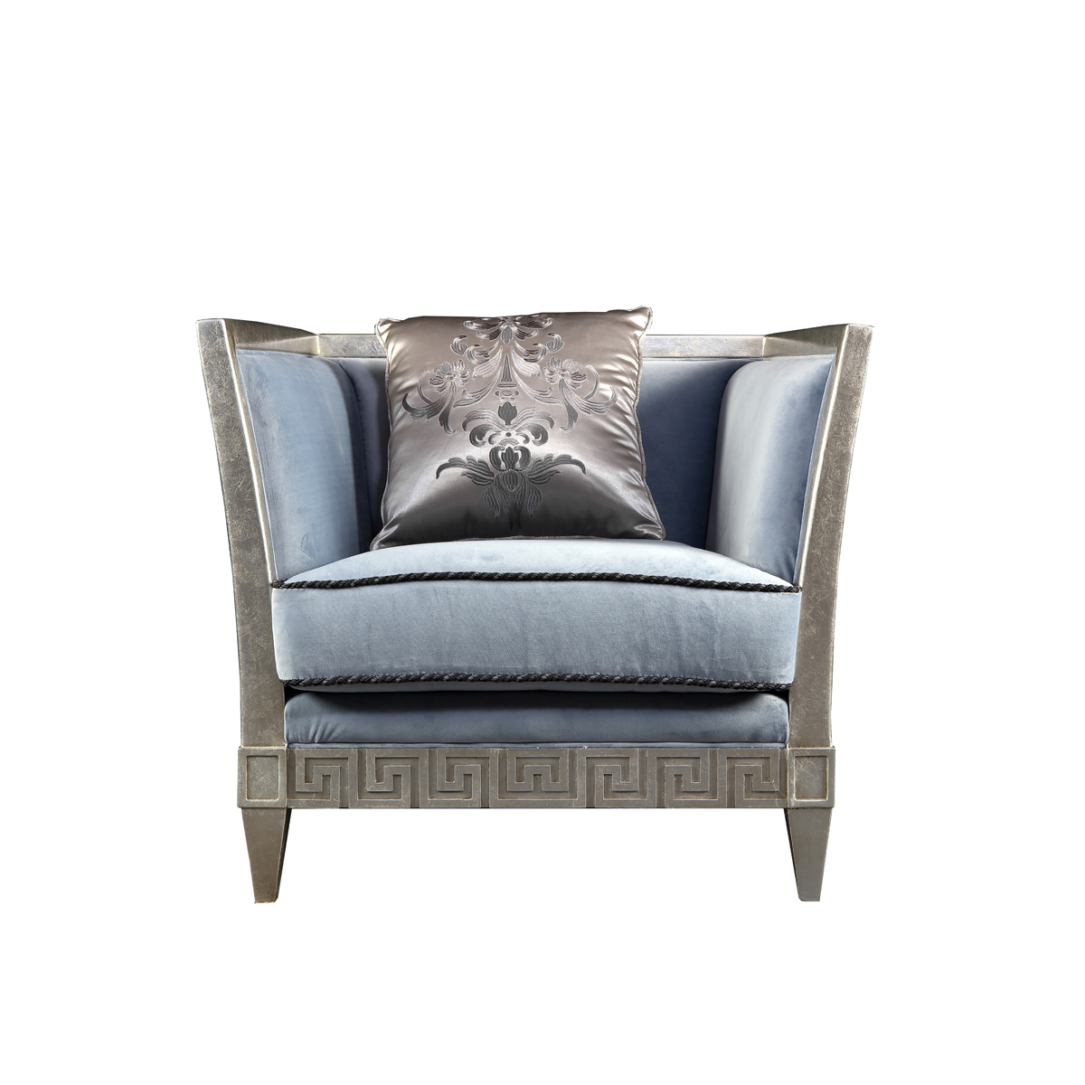 現米蘭代風格造型簡練,方正規整,充滿簡約的時尚氣息,富含設計或哲學意味而且不顯夸張。沙發底部以希臘回紋修邊,賦予空間低調質感;豐富的軟包久坐不易塌陷,為人們提供舒適的家居體驗;同時使用象征福貴之氣的絳紫色,瞬間提升了整個空間氣質。