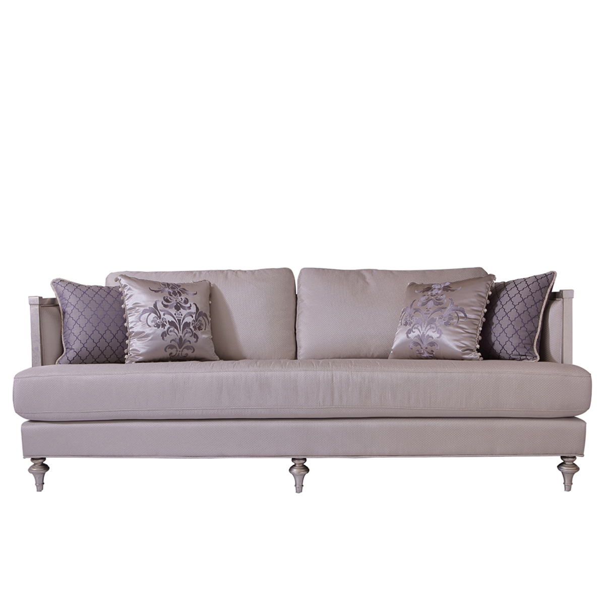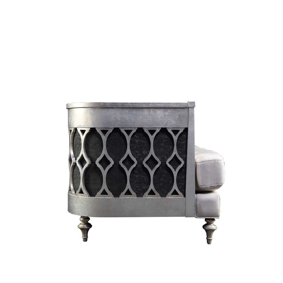 低靠背的沙發設計,為陽光留足了空間;仿古銀涂裝,從容之中難掩氣質的流露。鏤空工藝勾勒出輕盈修長的線條,在弧形流暢的沙發造型中演繹出變幻之美。