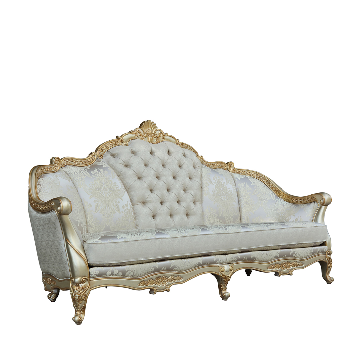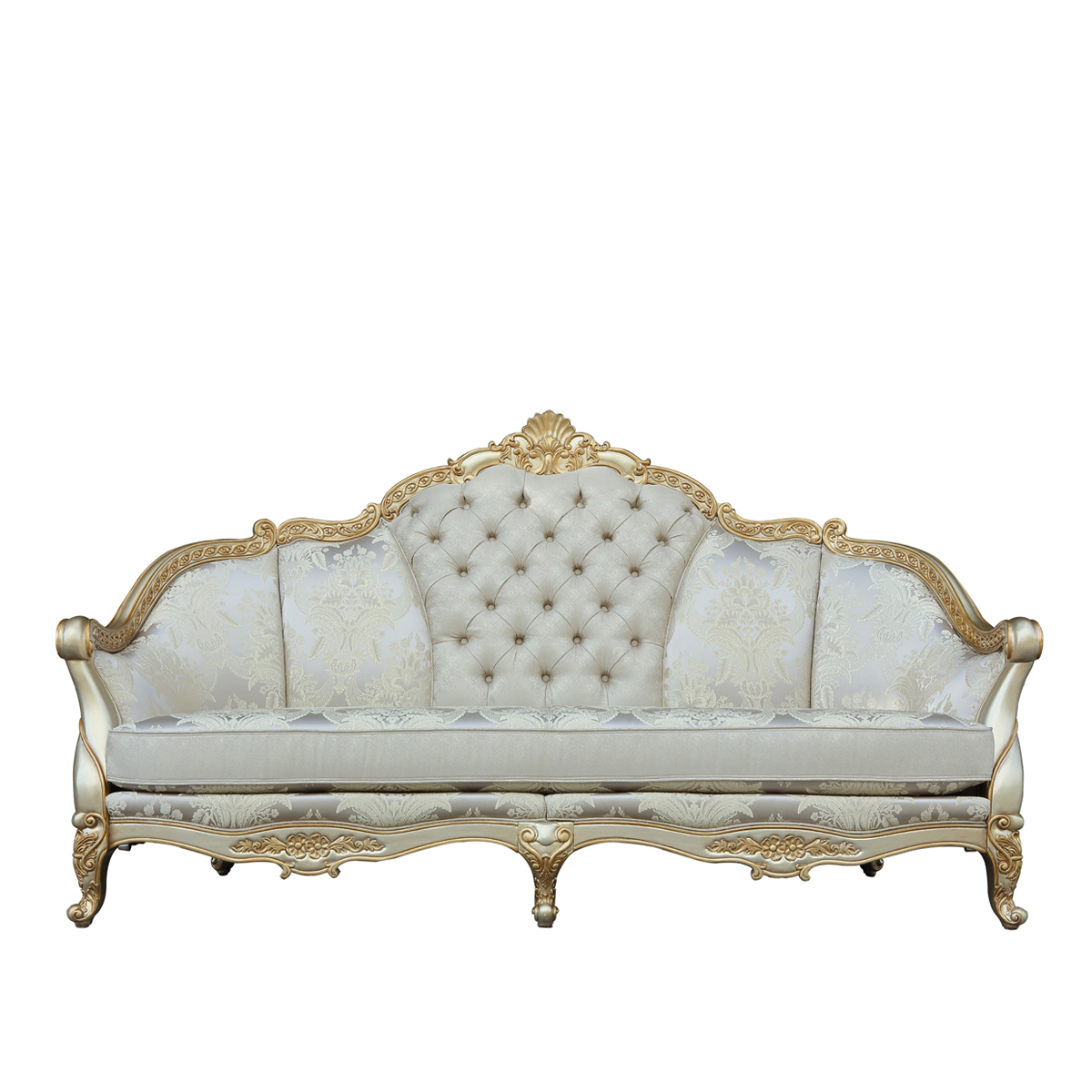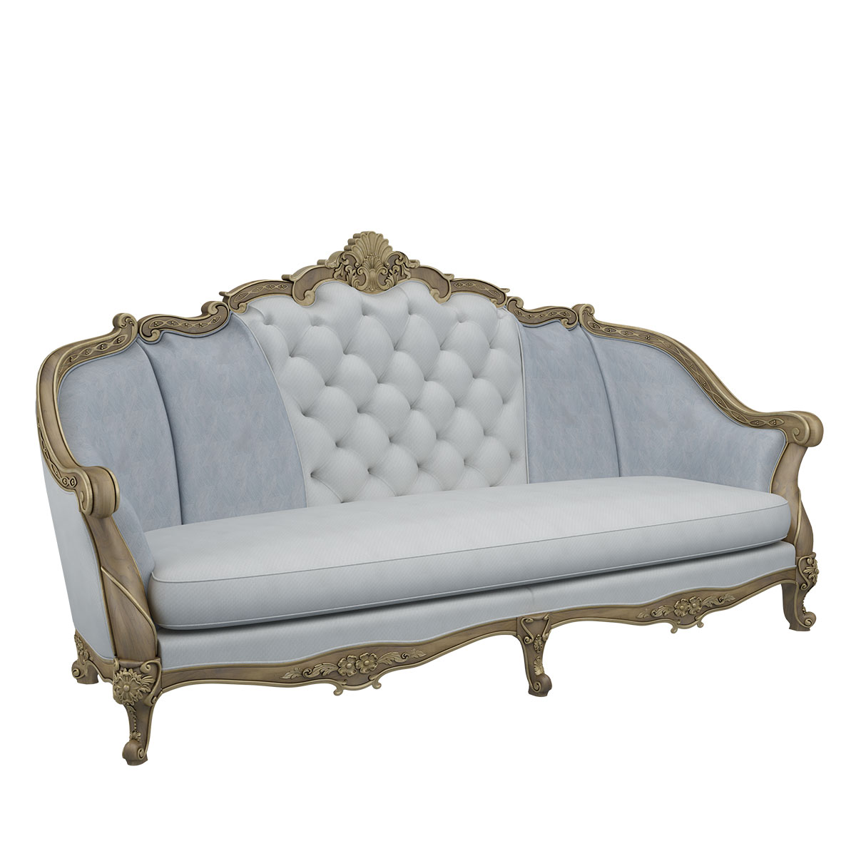 以路易時期新古典風格為設計靈感,以作為歌頌太陽王象征的太陽花連環雕刻為設計元素;配以實木花環和卷葉雕刻,以及洛可可經典彎腿,將新古典的美表現得淋漓盡致。匠心手工拉扣捫包在霜灰色與香檳銀箔色的呼映下實現視覺享受,傾情演繹了法式宮廷家具的精致尊貴。