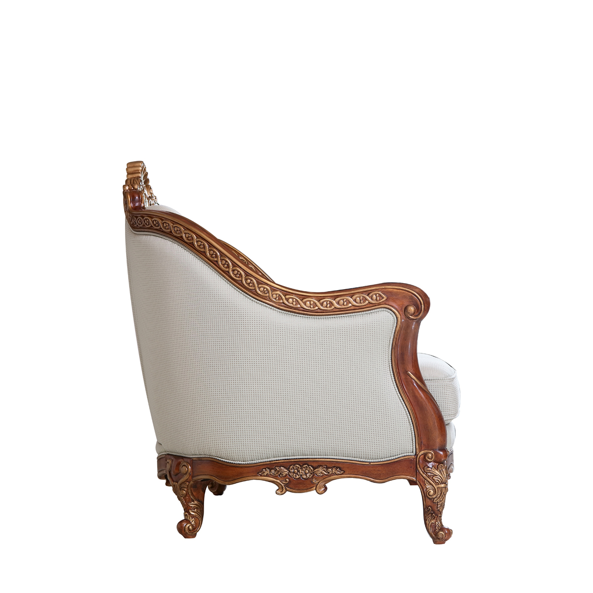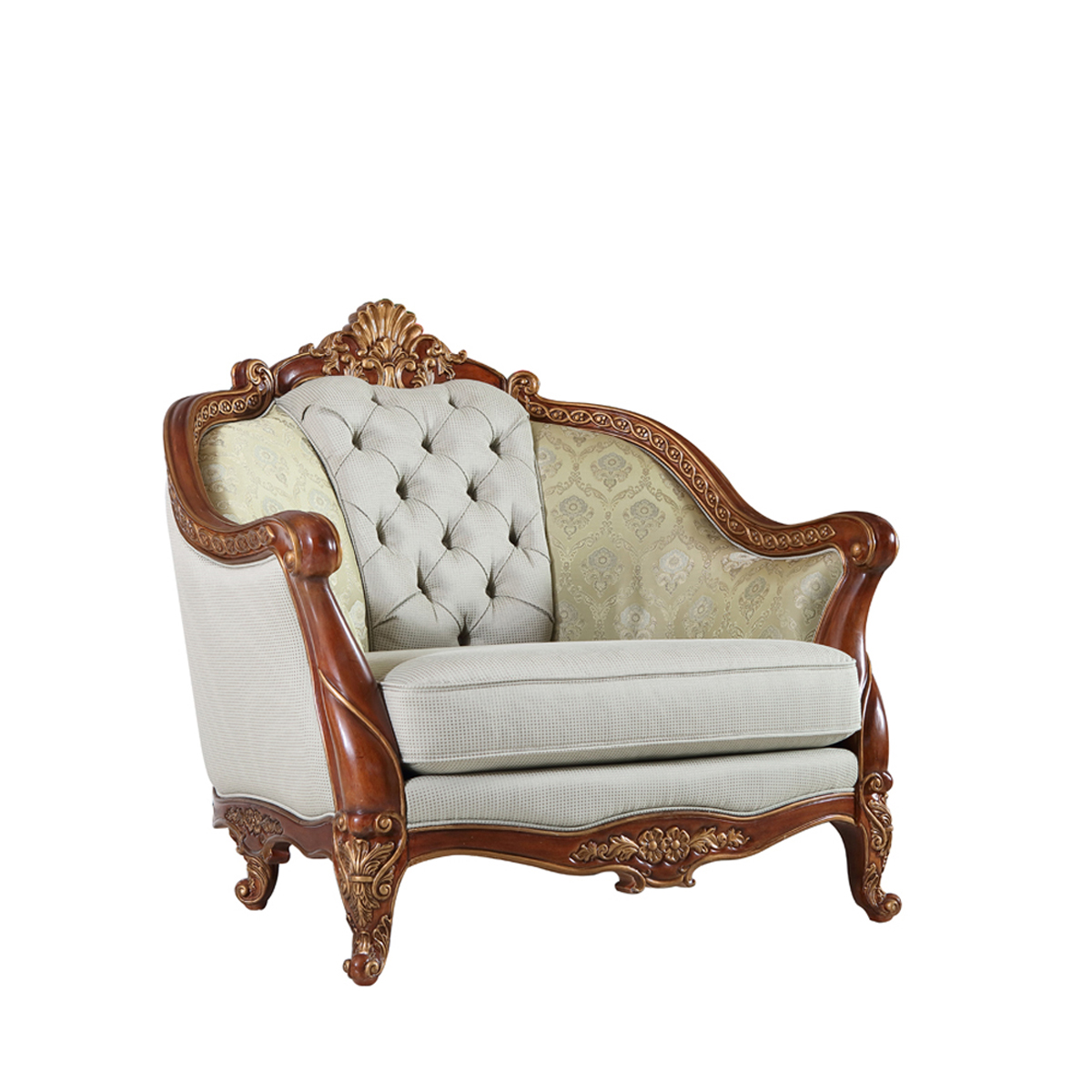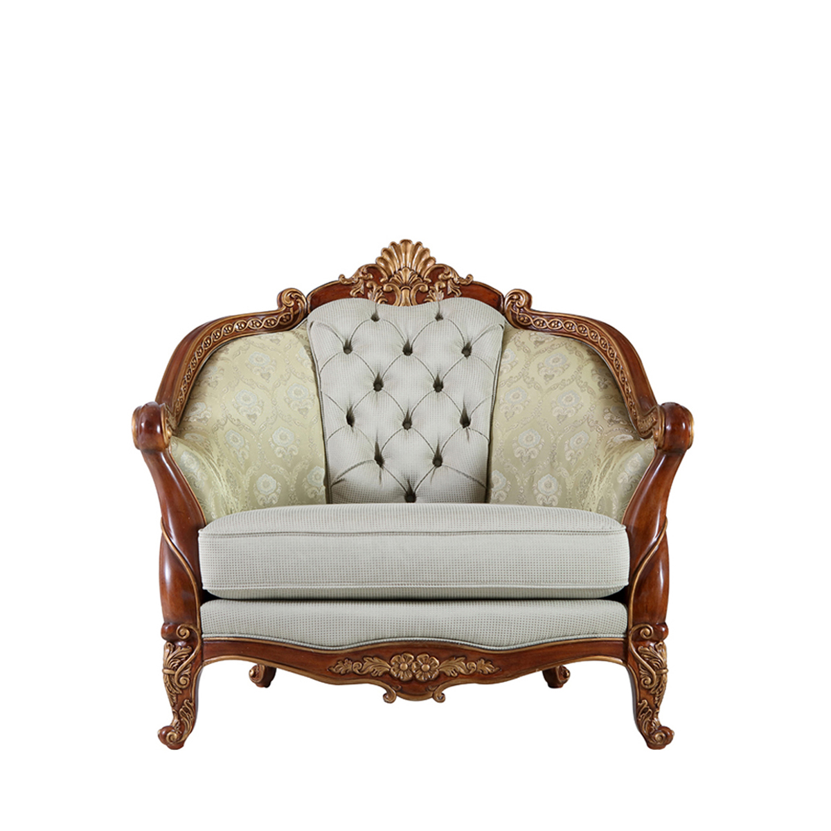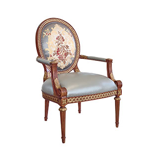 以路易時(shí)期新古典風(fēng)格為設(shè)計(jì)靈感,以作為歌頌太陽王象征的太陽花連環(huán)雕刻為設(shè)計(jì)元素;配以實(shí)木花環(huán)和卷葉雕刻,青草淺綠與棕色大地色相得益彰,以及洛可可經(jīng)典彎腿,將新古典的美表現(xiàn)得淋漓盡致,傾情演繹了法式宮廷家具的精致尊貴。