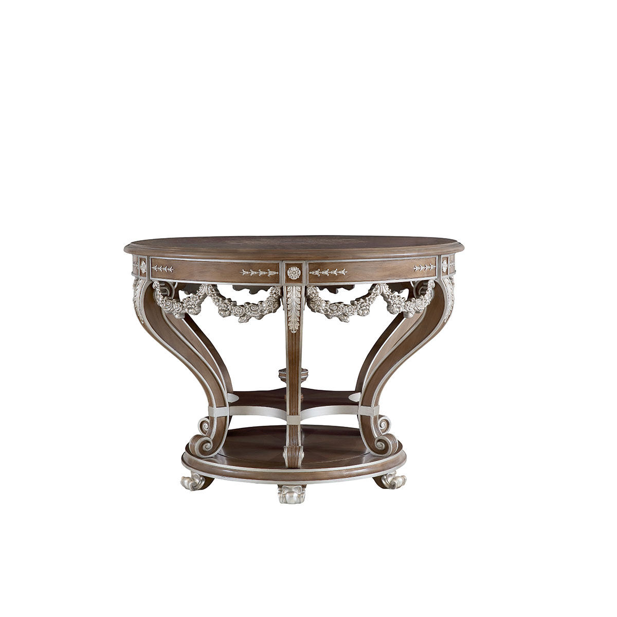 為表現英國皇室的華麗和莊嚴,以英國溫莎堡為設計元素。使用雕刻描金葉飾花紋,表現出英國王室的典雅氣質,配上代表勝利的旋渦狀支撐柱、精致的手工雕刻細節和貼金箔工藝,完美演繹了英式宮廷家具的奢華尊貴,可謂是極具典藏價值的傳世之作。