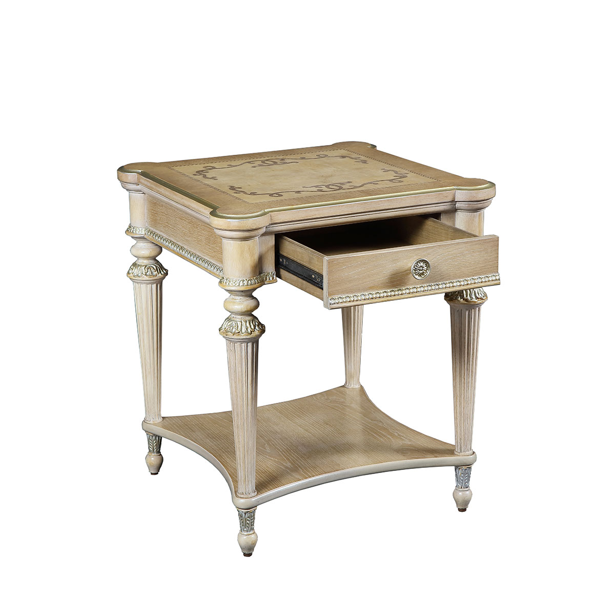 翡冷翠長方燈臺以直線為美的的羅馬柱塑造而成,家具表面的圖案使用名貴的白栓樹瘤,由工藝嫻熟的匠師純手工拼貼而成,象征勝利和榮耀的月桂紋路雕刻裝飾其中,使實用性和藝術性共存。
