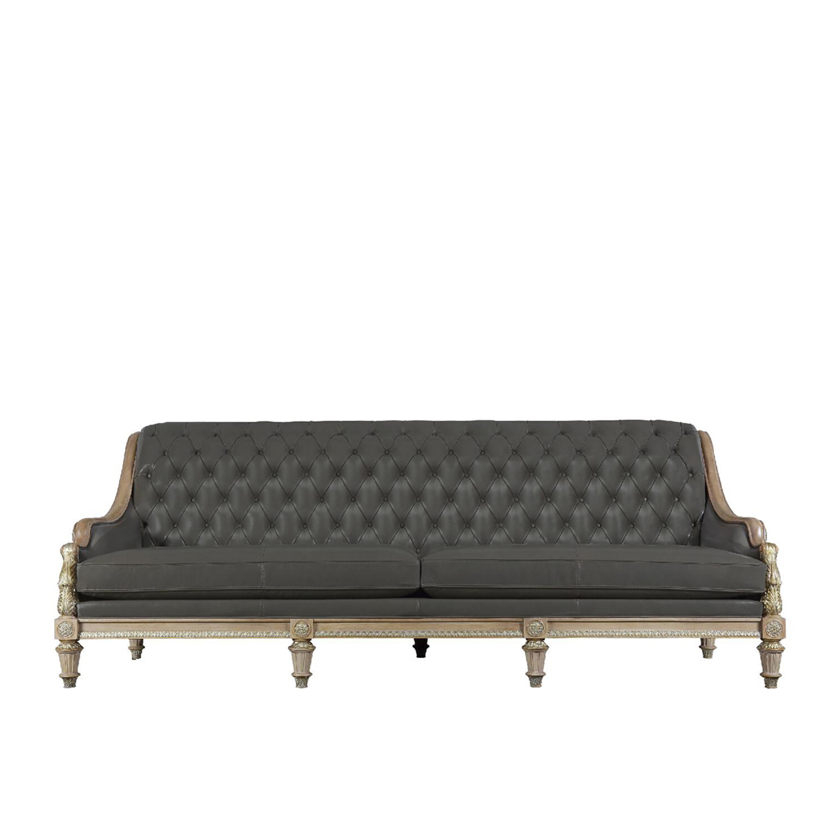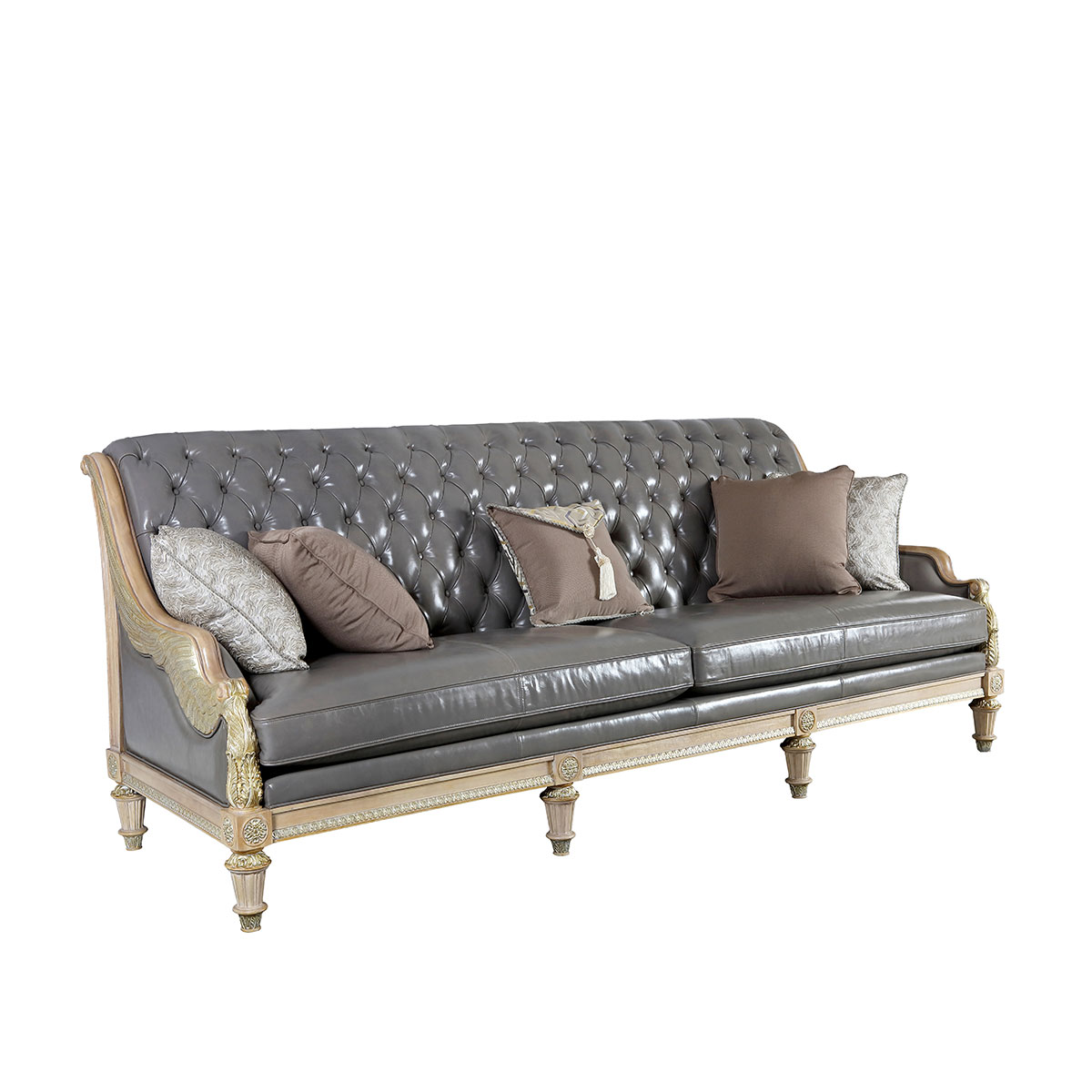 魅影灰邂逅灰褐色,皮質珍奢而不失大氣之姿;設計雕刻出勝利女神-Samothrace翅膀扶手,羽翼豐滿的羽毛雕刻極為精巧經典,援引古典常用的色彩,以簡飾繁;錯落有序的條紋回路蘊藏著達•芬奇的繪畫創作靈感,拉斐爾的建筑設計妙思以及米開朗基羅的雕塑精粹。