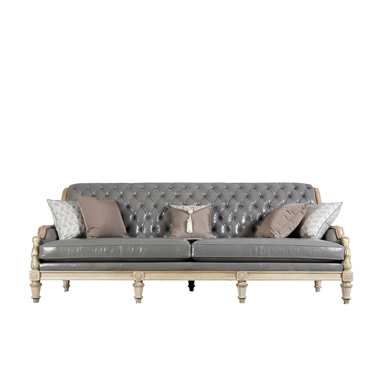 * 本款沙發可選擇四片拆裝(底座、左扶手、右扶手、后背)* 手工雕刻的工藝細節* 細致的拉扣工藝和包有豐厚的填充物坐墊;* 標配抱枕:550*550 6個 480*480 1個* 提供多種面料可供選擇;