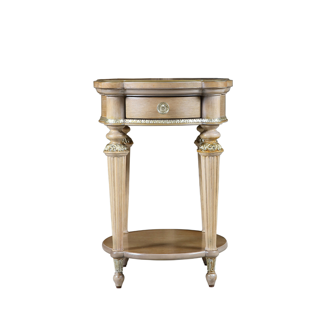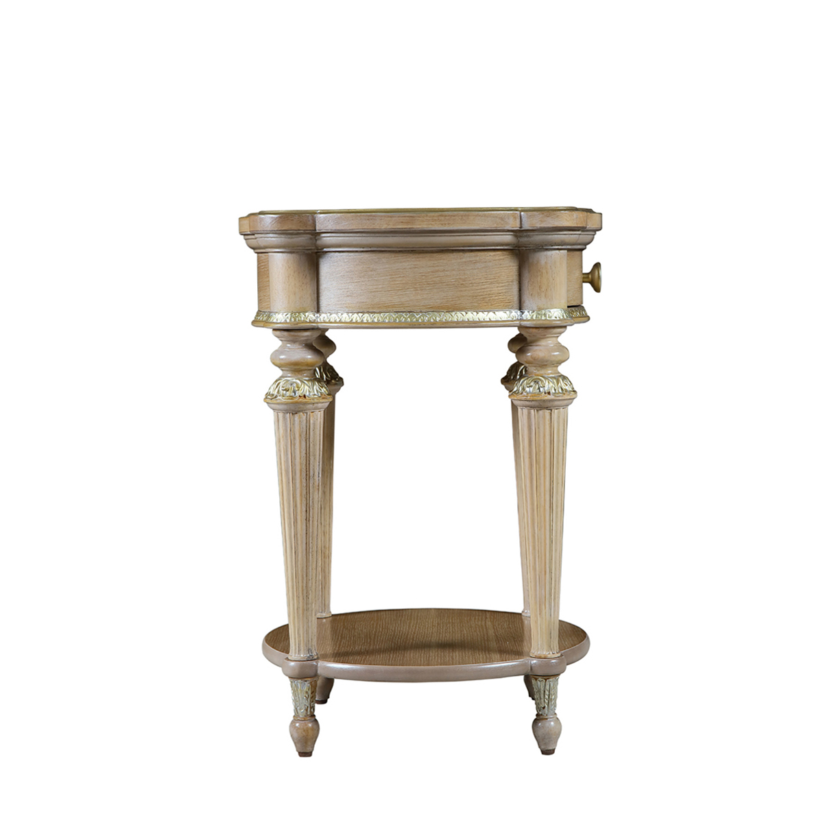 意大利古典家具,講究的是細節(jié)的完美極致和整體的高雅奢華, 薄木拼花工藝,設(shè)計師將刨制的珍稀木片通過一定規(guī)則和樣式拼貼成賞心悅目的圖案,貼銀刻金和鑲嵌的裝飾在這個翡冷翠圓燈臺上也能一一呈現(xiàn),不僅美觀奢華,更整體增加了家具的歷史性和藝術(shù)性。