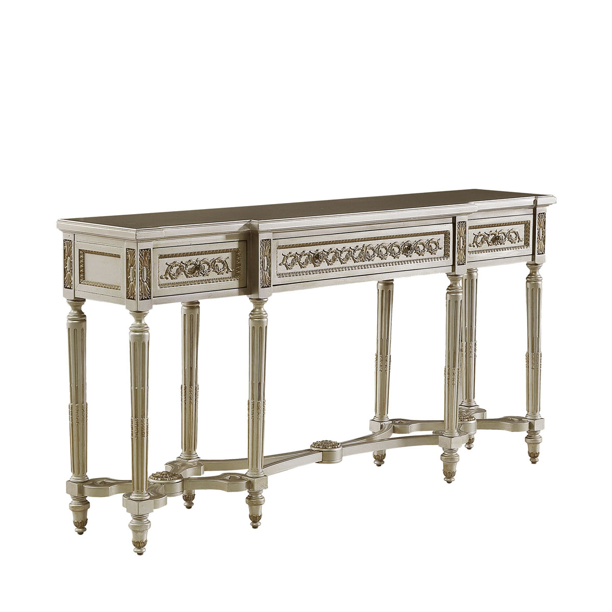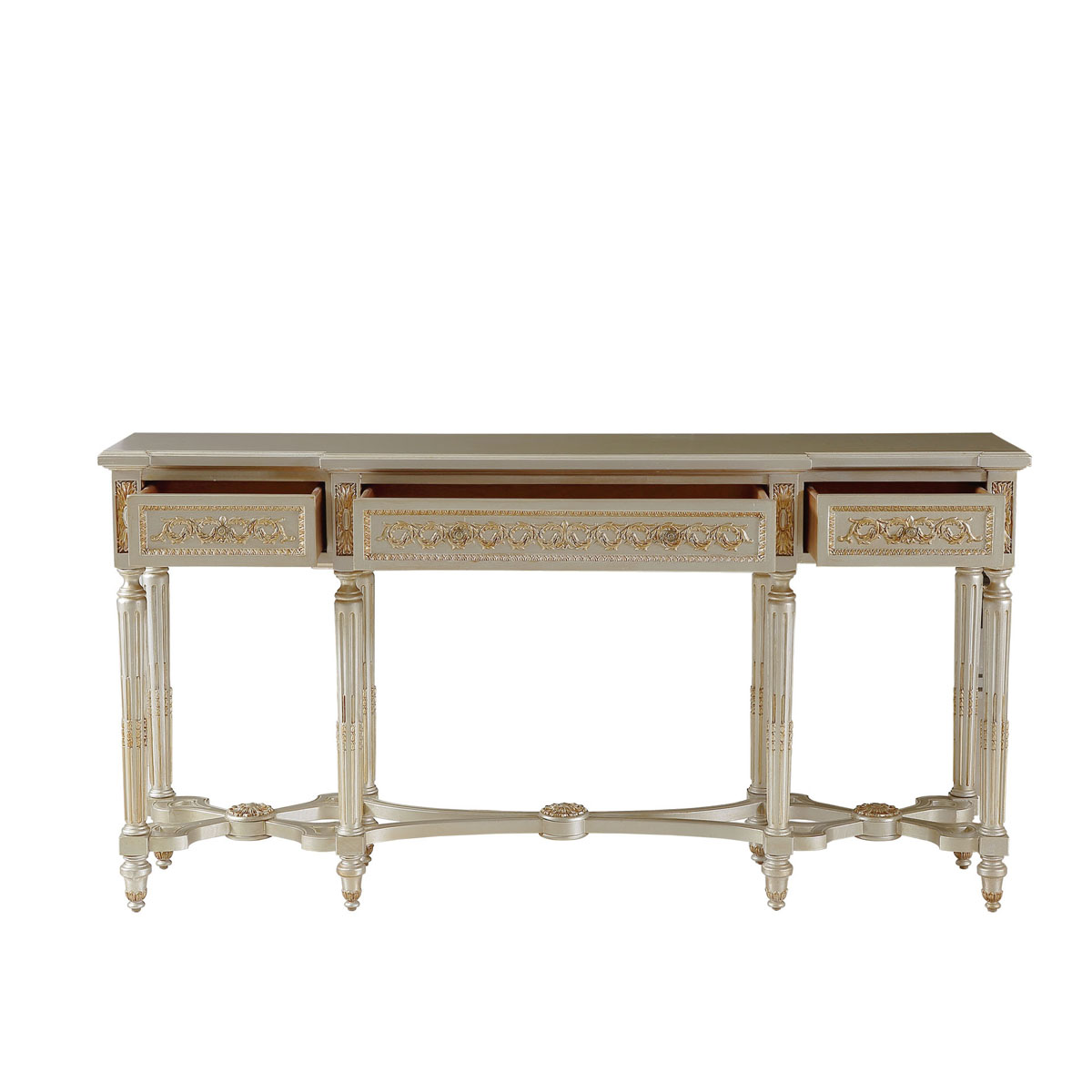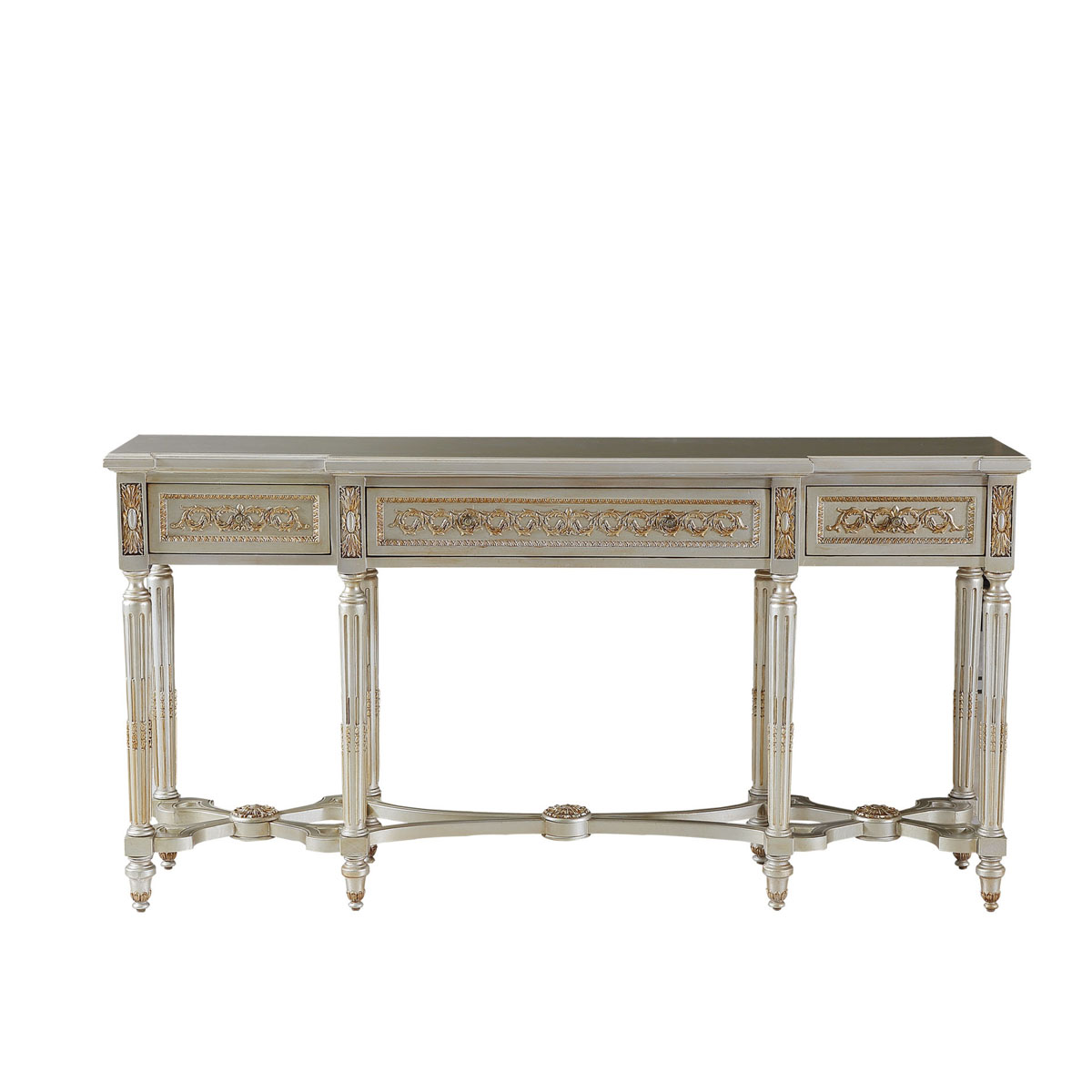 * 為表現法國路易時期的莊嚴和浪漫,以法國凡爾賽宮為設計元素。使用歌頌路易十四時期的太陽花連環雕刻,顯示其王權穩固地位的錐形腿腳設計;配以哥特式建筑中的大圓窗骨架設計、精美的木皮貼面與絢麗的貼金工藝,完美演繹了法式宮廷家具的奢華尊貴。
