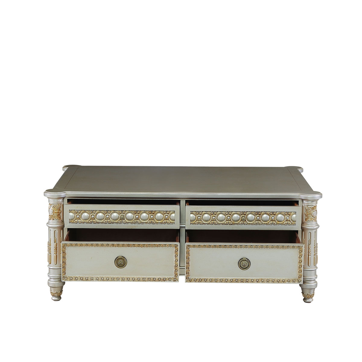 * 為表現(xiàn)法國路易時期的莊嚴(yán)和浪漫,以法國凡爾賽宮為設(shè)計元素。使用歌頌路易十四時期的太陽花雕刻,顯示其王權(quán)穩(wěn)固地位的錐形腿腳設(shè)計;配以鉆石圖案木皮貼面和貼金工藝,完美演繹了法式宮廷家具的奢華尊貴。