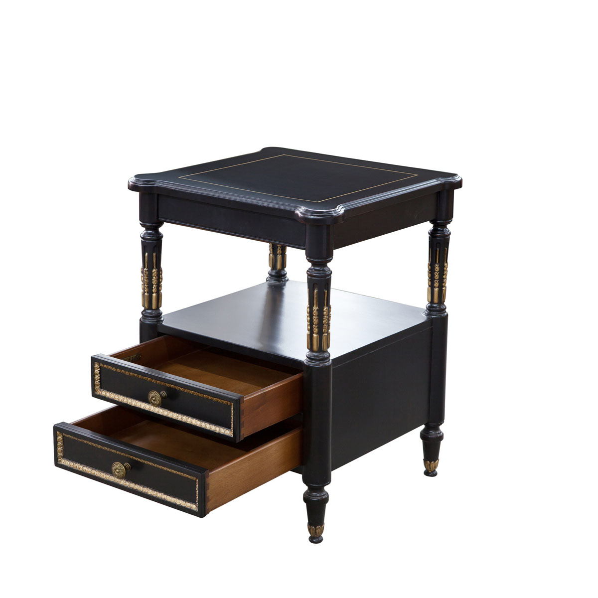 * 精細(xì)的雕刻工藝配上仿金箔與十八道油漆工藝; * 結(jié)實(shí)的連接技術(shù); * 二個(gè)儲(chǔ)物功能的抽斗; * 多種實(shí)木薄片拼接工藝;