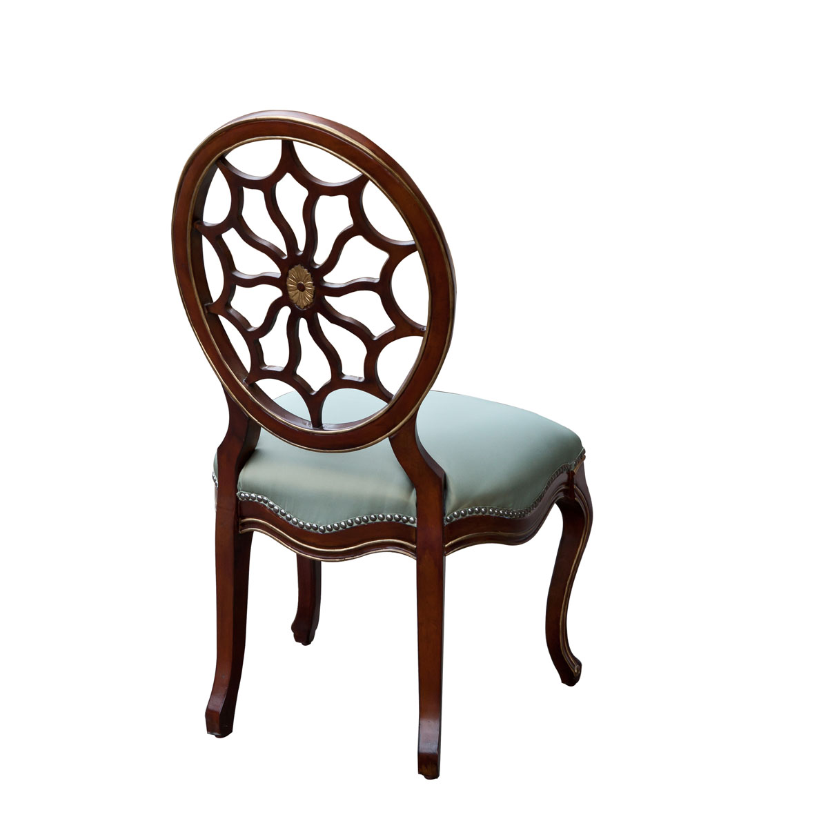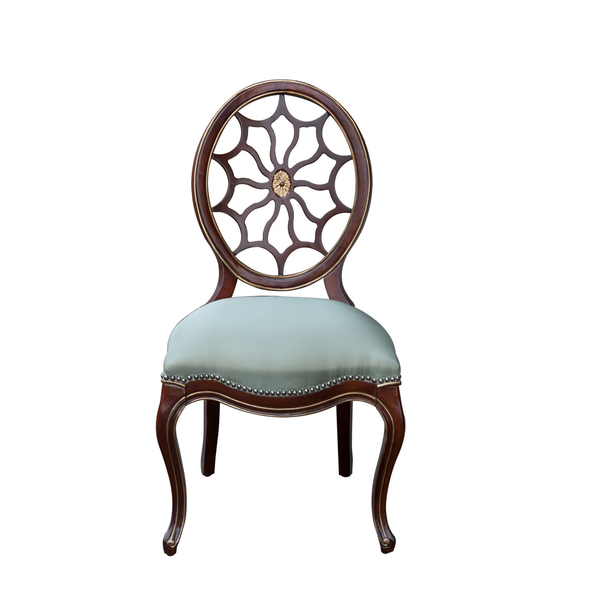 * 參考喬治三世時期的古董造型設計,使用輪子構造椅背和安妮王后腿,配以精致的手工雕刻細節和涂金工藝、浪漫的花形布藝面料和厚實柔軟的填充物,是豪華系列凡爾賽玫瑰法式單椅的特色。