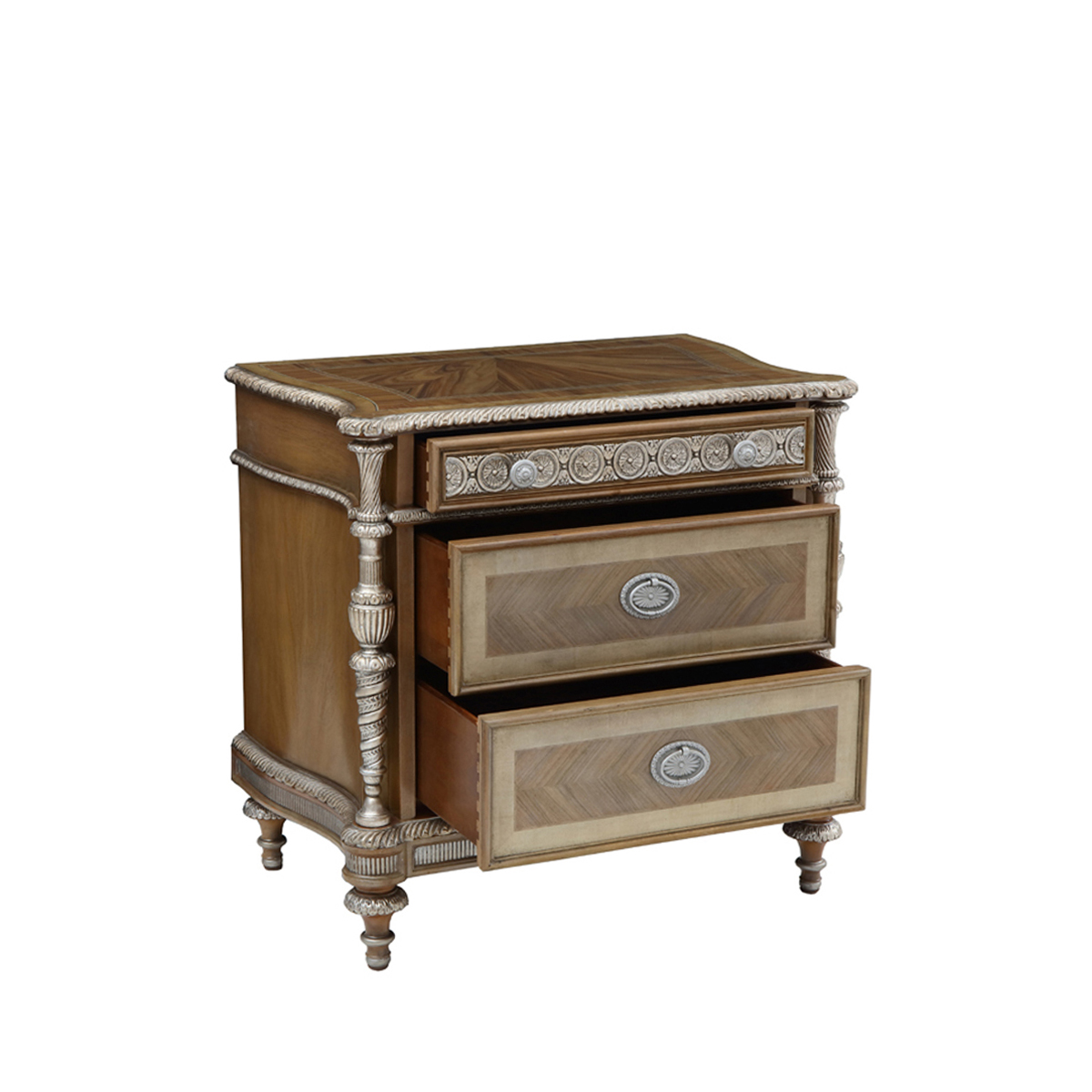 * 手工雕刻的工藝細(xì)節(jié)結(jié)實(shí)的連接技術(shù)18道以上的多步驟油漆工藝; * 三個(gè)儲(chǔ)物抽斗,而在其底部采用經(jīng)典硬木實(shí)木滑軌設(shè)計(jì); * 腳底部裝有可調(diào)腳釘;