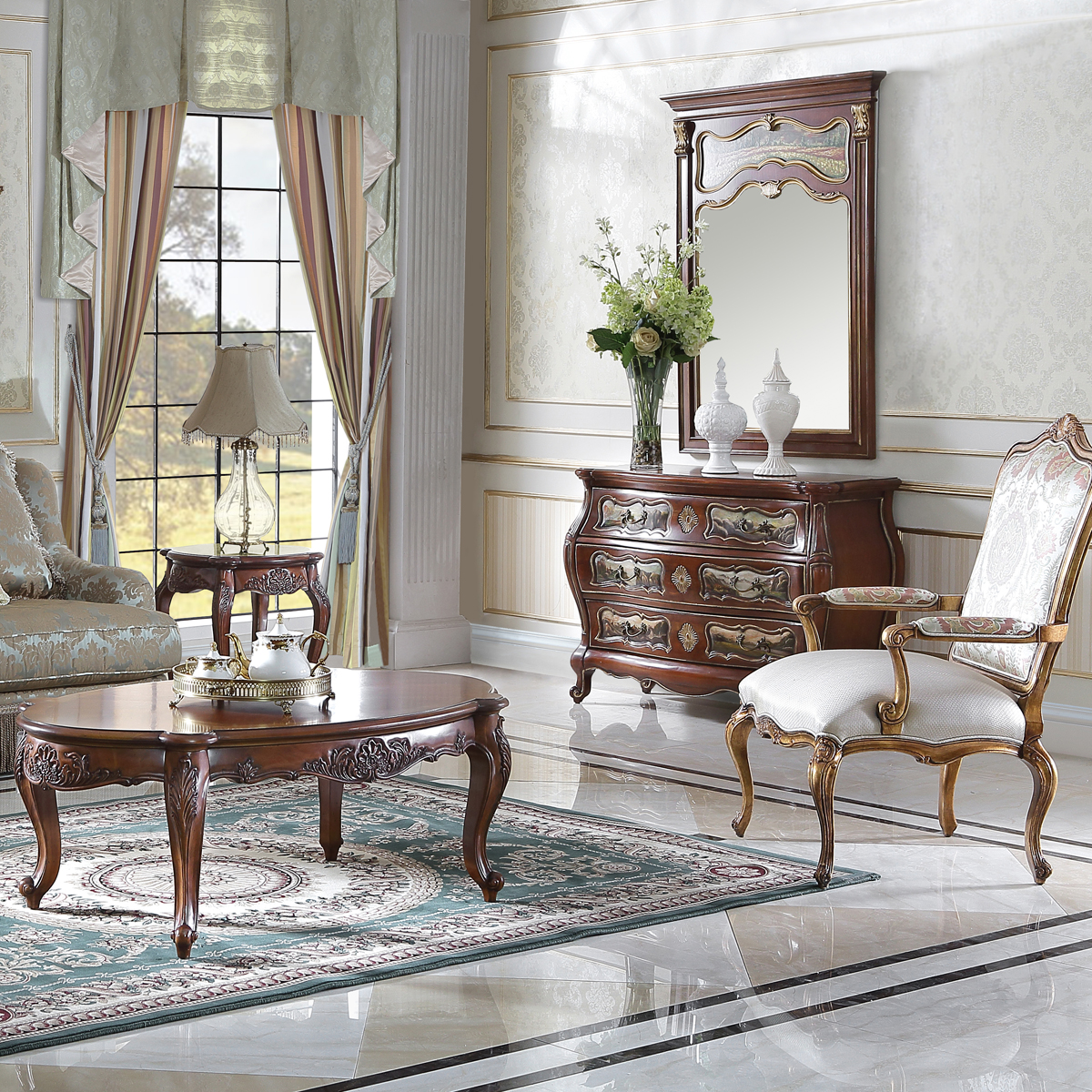 * 以英國木橋小鎮(zhèn)的鄉(xiāng)村風(fēng)味為意念的手繪工藝,是英式田園風(fēng)格的另一設(shè)計元素。鄉(xiāng)村的風(fēng)景,配上卷葉狀的實木手工雕刻和涂金工藝,是木橋小鎮(zhèn)英式梳妝臺的特色。
