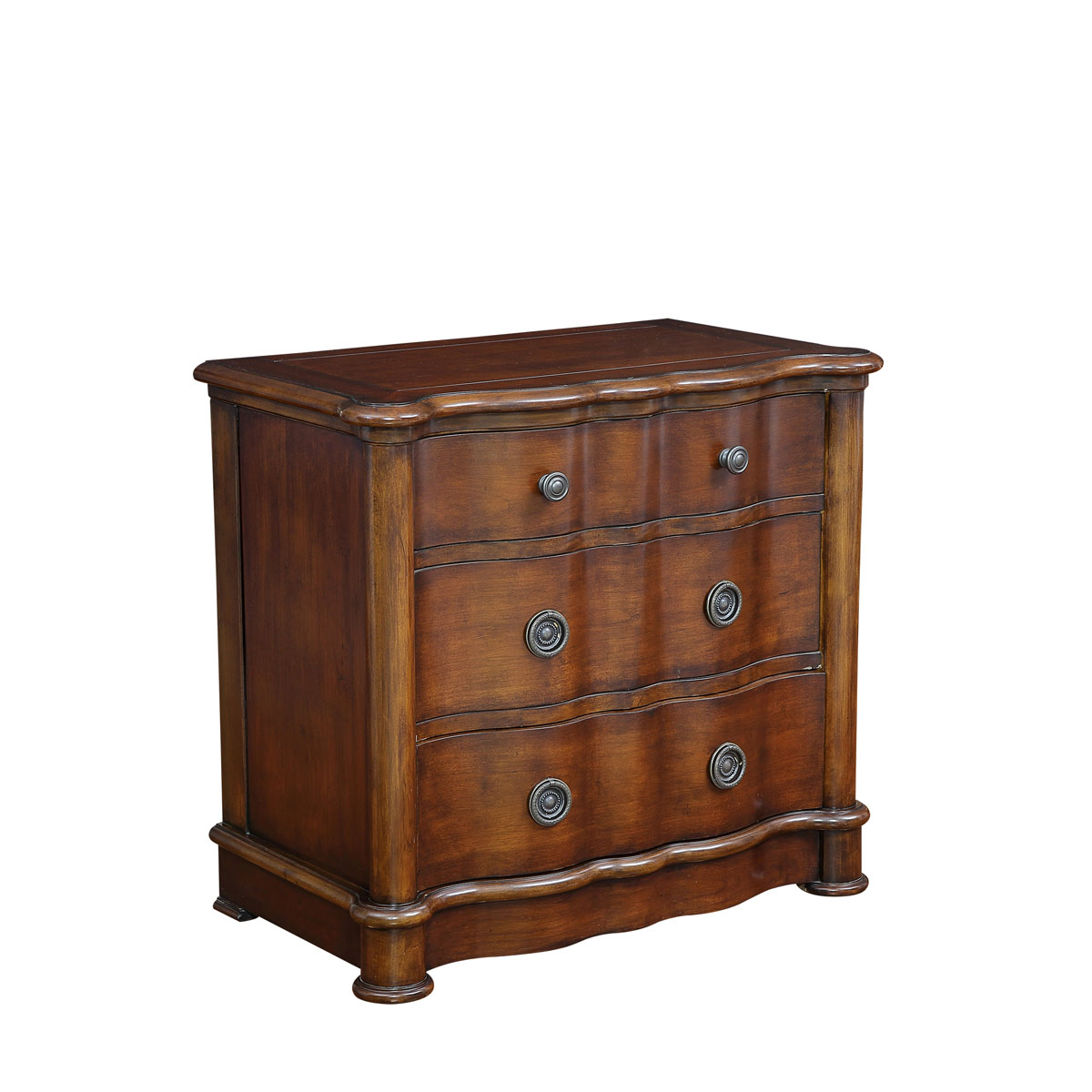 * 獨(dú)特的英式休閑風(fēng)格仿實木設(shè)計,是以英國木橋小鎮(zhèn)的鄉(xiāng)村風(fēng)味為設(shè)計元素,旨在傳遞一種舒適愜意、回歸自然的生活方式,配上優(yōu)美的曲線形斗面設(shè)計和古銅色球形把手,是木橋小鎮(zhèn)英式三斗柜的特色。