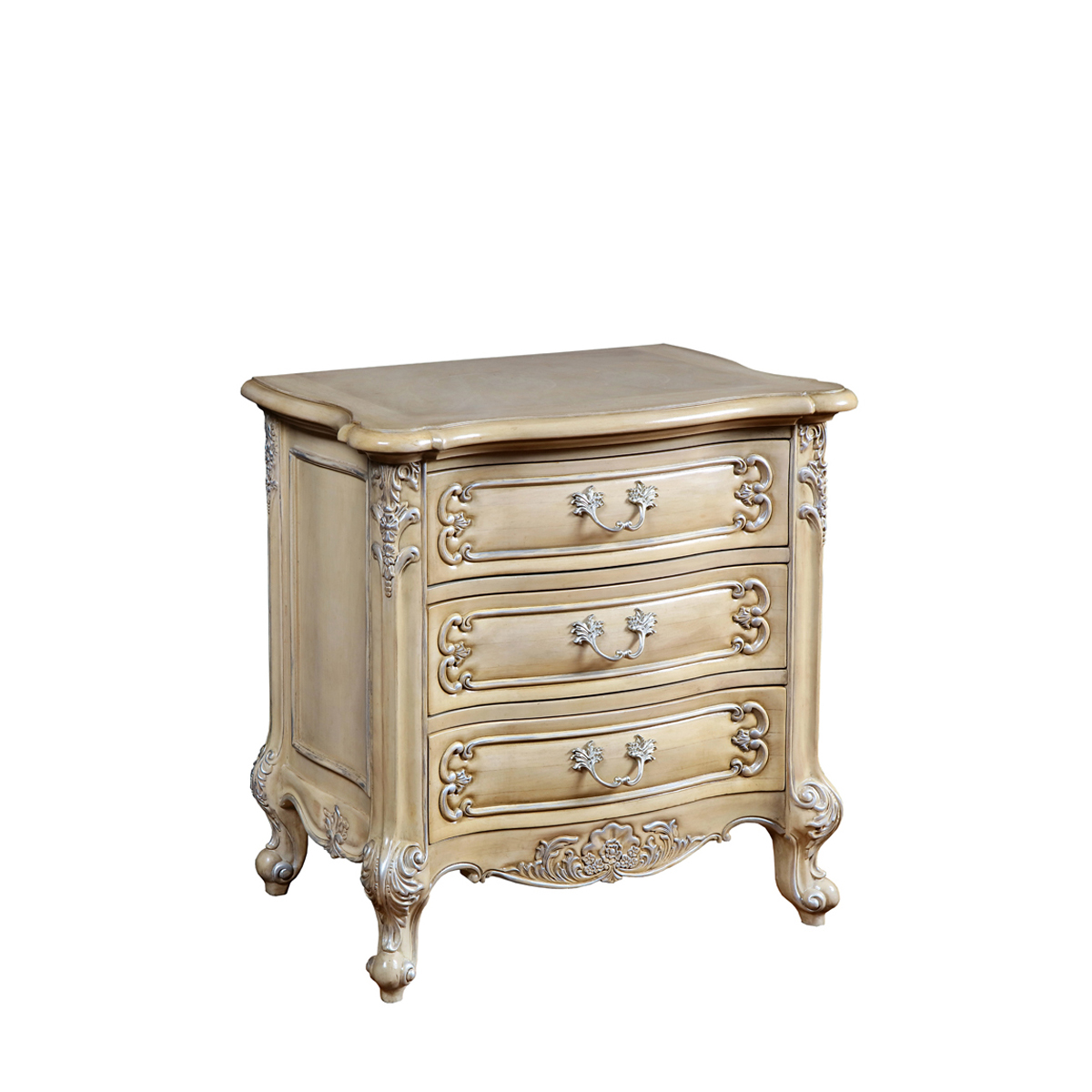 • 手工雕刻的花圃、藤蔓、阿坎瑟斯卷葉圖案和彎腳設計 • 結實的連接技術 • 有3個儲物抽斗,并在其底部采用經典硬木實木滑軌設計