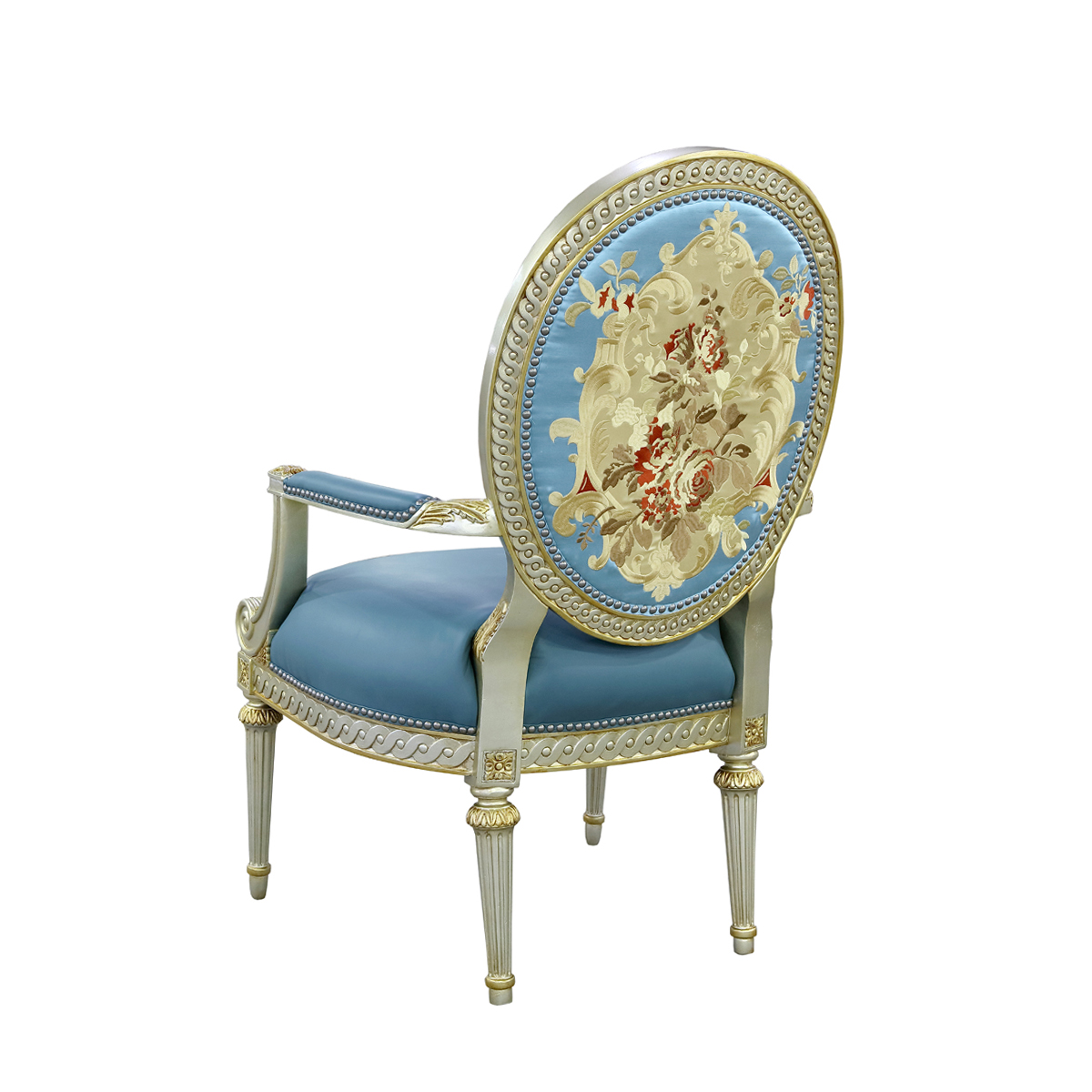 * 精細的手工雕刻配上仿金箔工藝結合十八道油漆工藝 * 坐墊和靠背包有豐厚的填充物; * 可拆裝的軟包座墊, * 提供多種面料可供選擇