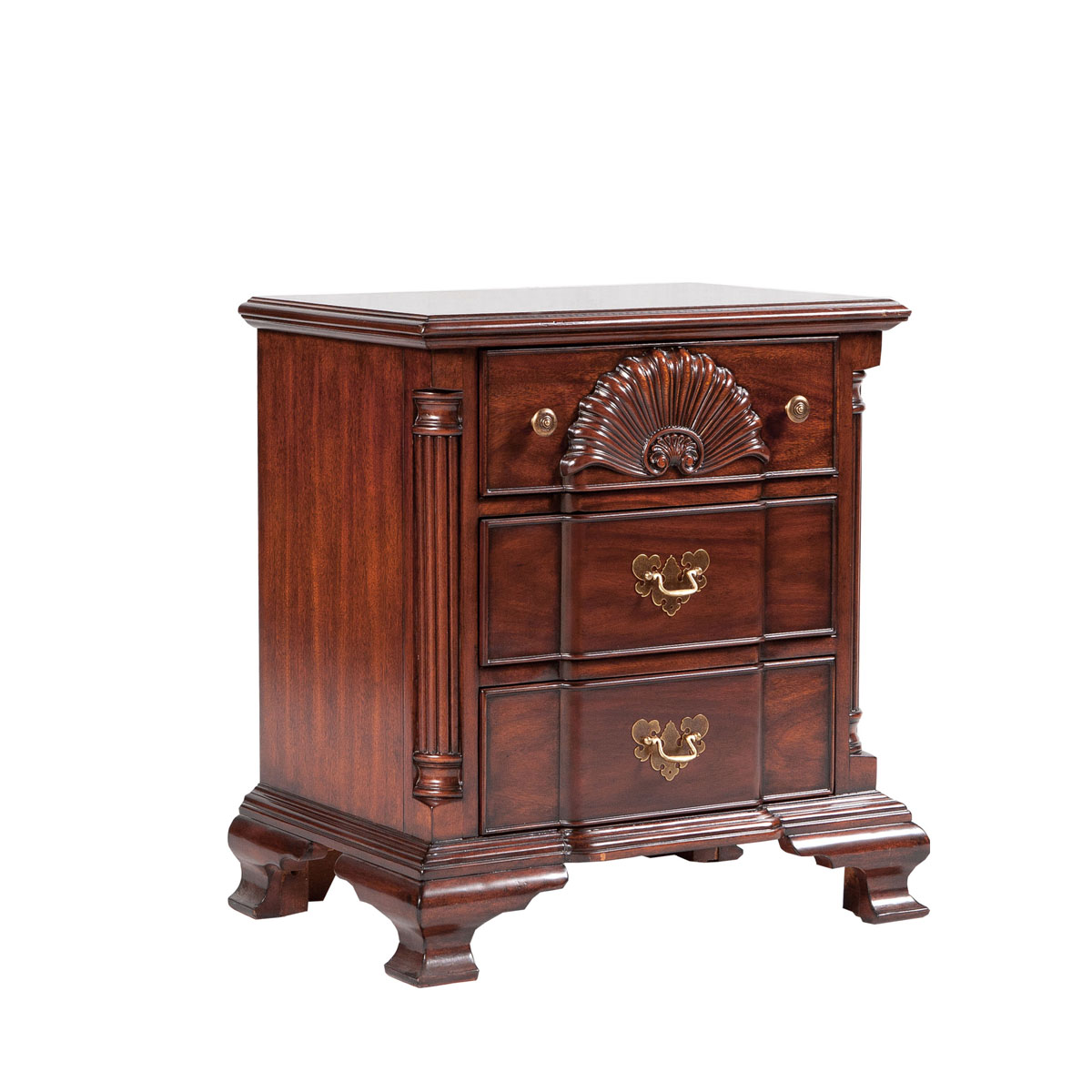 *以18世紀著名設計師 John Townsend(約翰.湯森)在70年代制造的邊柜為原形,重現其當時的輝煌。其設計元素,如象征幸運女神的貝殼形雕刻,建筑柱元素造型和蝴蝶形的黃銅拉手,充分表現了美國果敢堅毅的開拓精神與多元融合的美式家具特色。