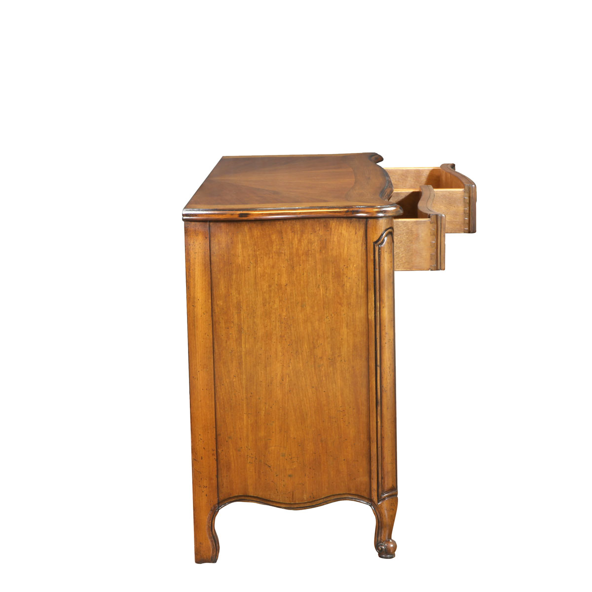 * 手工雕刻的阿坎瑟斯卷葉和攝政時期風格的彎腳設計 * 結實的連接技術 * 兩個儲物抽斗,并底部采用經典硬木實木滑軌設計;左右各有1塊可調整層板