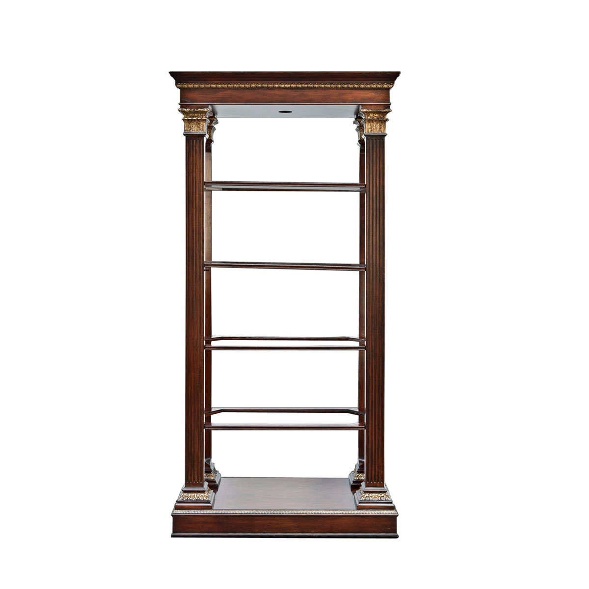 * 開放式空間,空間內(nèi)部裝有4塊可調(diào)節(jié)間距的層板; * 內(nèi)頂上有一個微調(diào)的筒燈,采用220v、35w燈泡; * 雄渾厚重的的實木柱,配以精巧別致的手工雕刻,更顯大氣; * 無論是靠墻或是做為隔墻使用都能顯出主人的霸氣,也可以兩件并排組合使用;