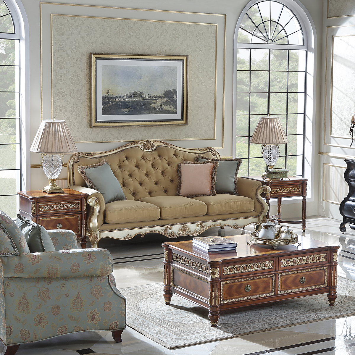 * 為表現(xiàn)法國(guó)路易時(shí)期的莊嚴(yán)和浪漫,以法國(guó)凡爾賽宮為設(shè)計(jì)元素。使用歌頌路易十四時(shí)期的太陽(yáng)花雕刻,顯示其王權(quán)穩(wěn)固地位的錐形腿腳設(shè)計(jì);配以鉆石圖案木皮貼面和貼金工藝,完美演繹了法式宮廷家具的奢華尊貴。
