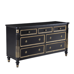 * 女主人關于美的秘密,或許只有梳妝臺知道。卷葉植物與直線凹槽裝飾的錐形腳,象征著皇室的卓越品味;華麗金箔貼飾和鉆石形拼花圖案,傳遞出奢華浪漫的專屬風格;而豐富的小抽屜與層格設計,則用實用功能向玲瑯滿目的化妝品與珍寶首飾致敬。
