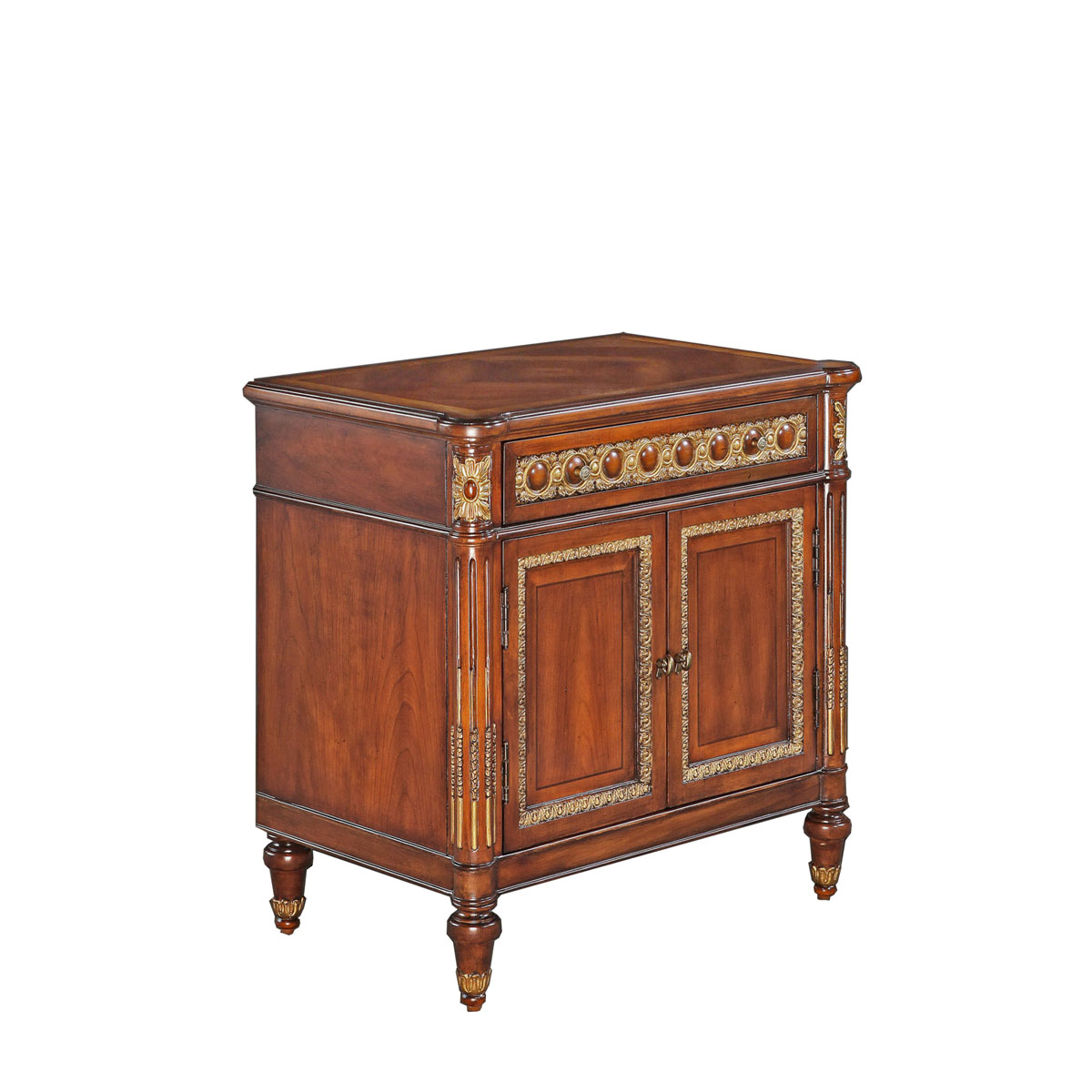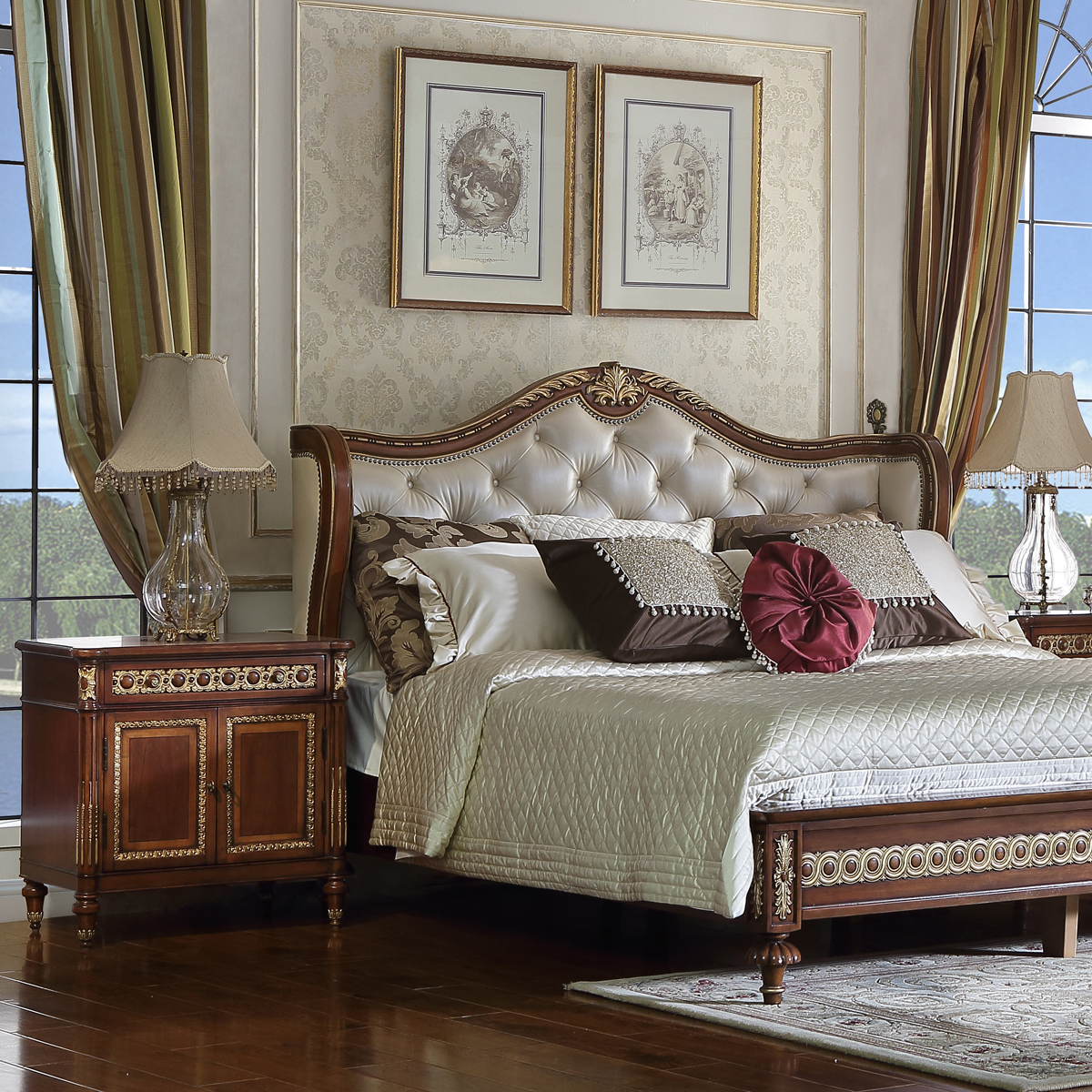 * 為表現法國路易時期的莊嚴和浪漫,以法國凡爾賽宮為設計元素。使用歌頌路易十四時期的太陽花連環雕刻,顯示其王權穩固地位的錐形腿腳設計,配以鉆石型木皮貼面與貼金工藝,完美演繹了法式宮廷家具的奢華尊貴。