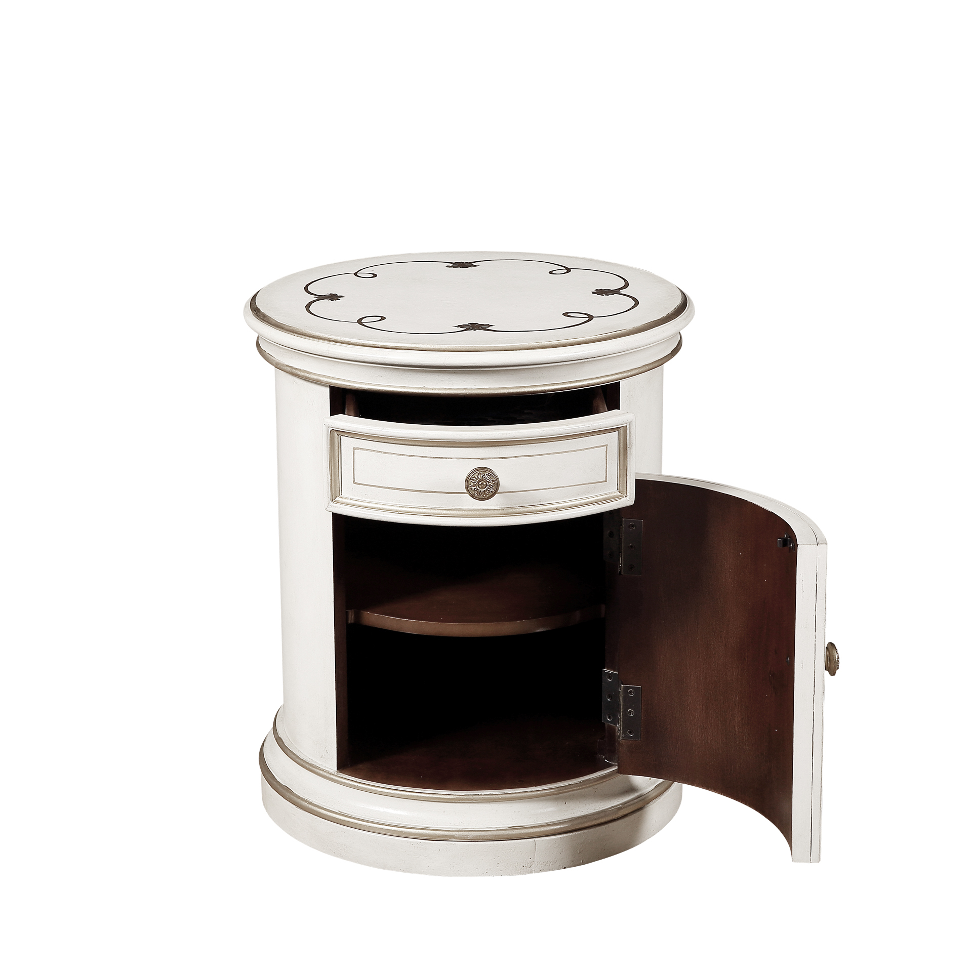 * 一個(gè)儲(chǔ)物抽斗,底部采用經(jīng)典的硬木實(shí)木滑軌。 * 門內(nèi)一塊活動(dòng)層板,儲(chǔ)存空間可自由調(diào)節(jié) * 多種木皮拼接工藝。