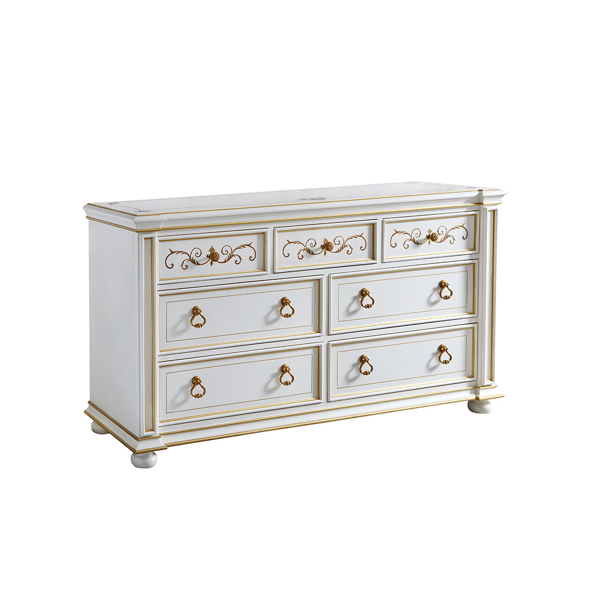 以意大利美麗而古老的城市維羅納為設(shè)計(jì)靈感,采用了清新動(dòng)人的花草手繪與帶仿古效果的色澤痕跡,來(lái)表現(xiàn)出藝術(shù)家具獨(dú)特的氣質(zhì)和內(nèi)涵,配以閃耀的涂金工藝與古董白配色,精彩演繹了意大利人對(duì)奢華絢麗的寵愛(ài)。