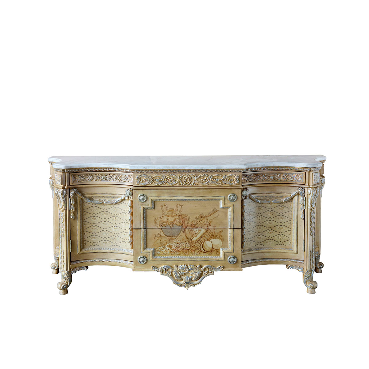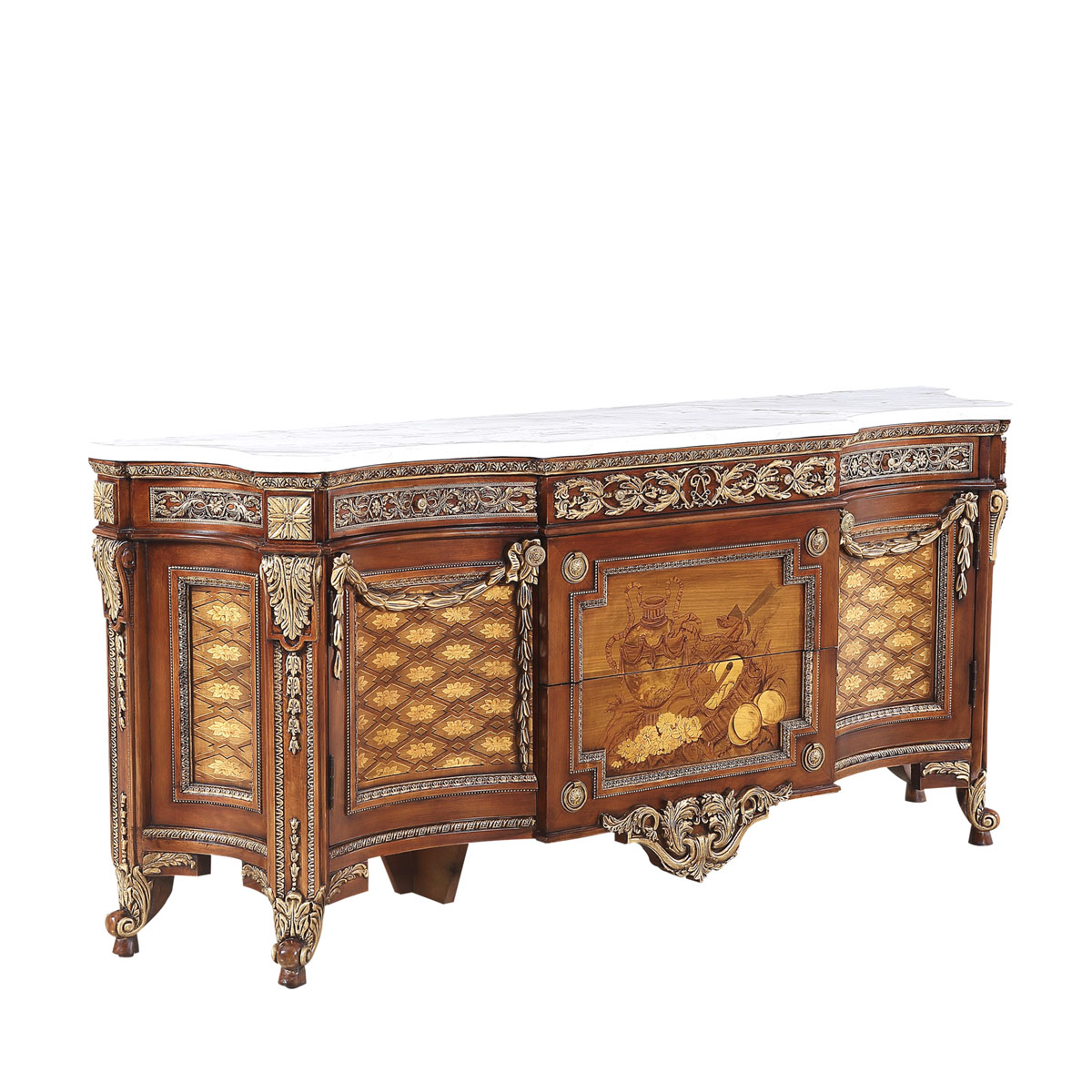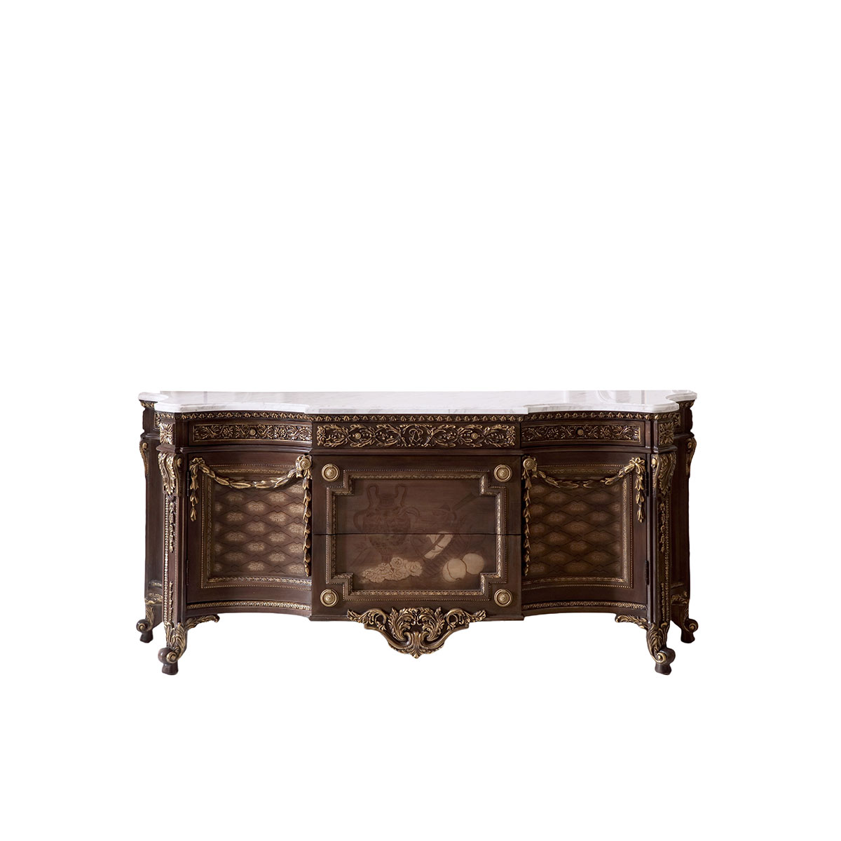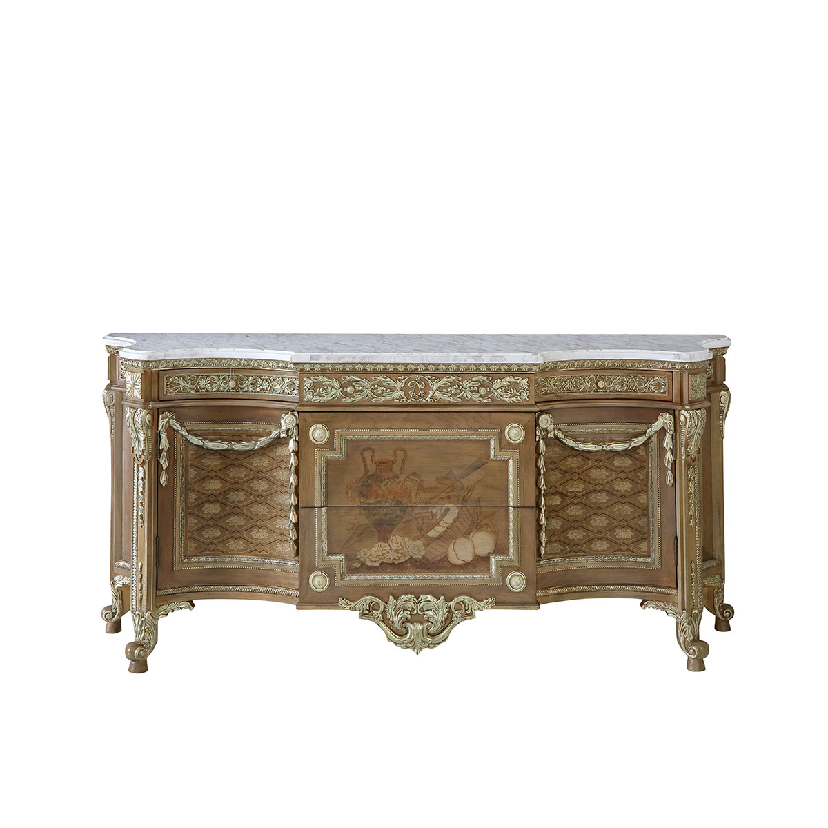 以法國(guó)著名工匠 Jean Henri Riesener 為 Louis VXI (路易十六)設(shè)計(jì)的新古典風(fēng)格古董櫃為靈感,四平八穩(wěn)的方形設(shè)計(jì)配以細(xì)膩的雕刻與實(shí)木簿片鑲嵌,呈現(xiàn)出法國(guó)宮廷的浪漫。