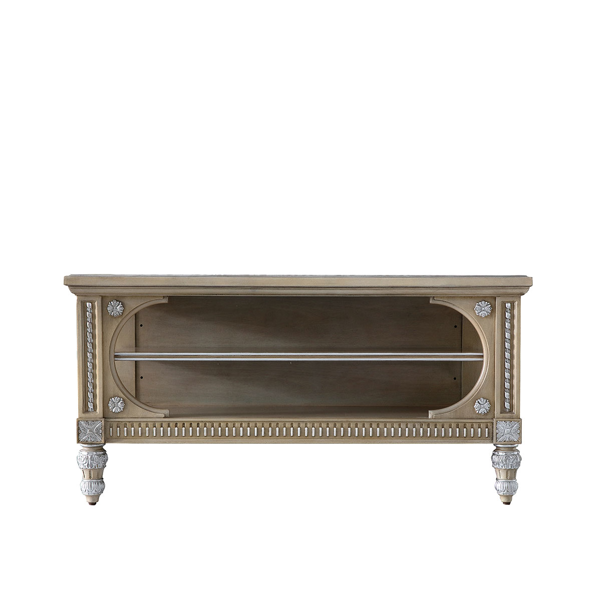 以意大利美麗而古老的城市維羅納為設(shè)計(jì)靈感,采用了清新動(dòng)人的花草手繪與帶仿古效果的色澤痕跡,來(lái)表現(xiàn)出藝術(shù)家具獨(dú)特的氣質(zhì)和內(nèi)涵,配以閃耀的涂金工藝與古董白配色,精彩演繹了意大利人對(duì)奢華絢麗的寵愛(ài)。