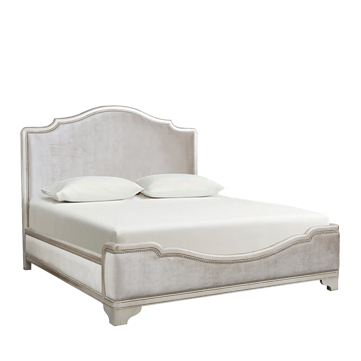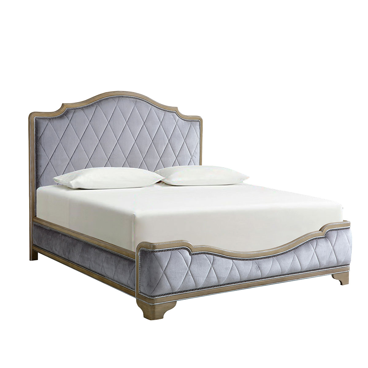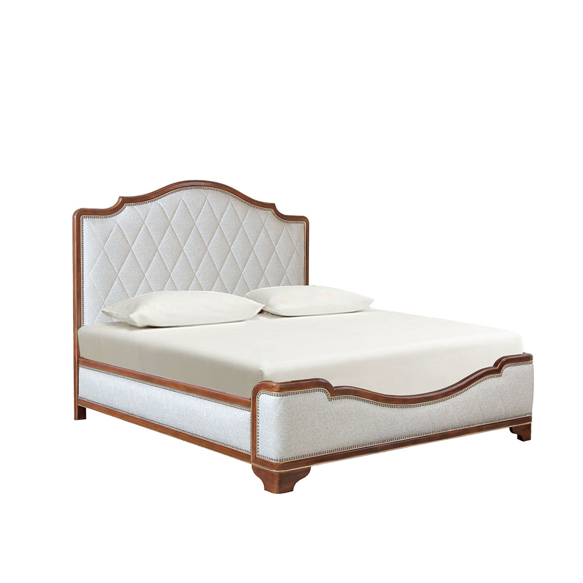 珍珠灰色獨有的光澤與色調,可以讓家具看起來歷久彌新,切割分明的菱形靠包倍顯理性主義;流行簡約的現代造型設計搭配帶仿古效果的色澤痕跡,緊密有序的仿古銅釘增強時尚氣息,注重細節美,充分彰顯了古典奢華與現代美學的結合。