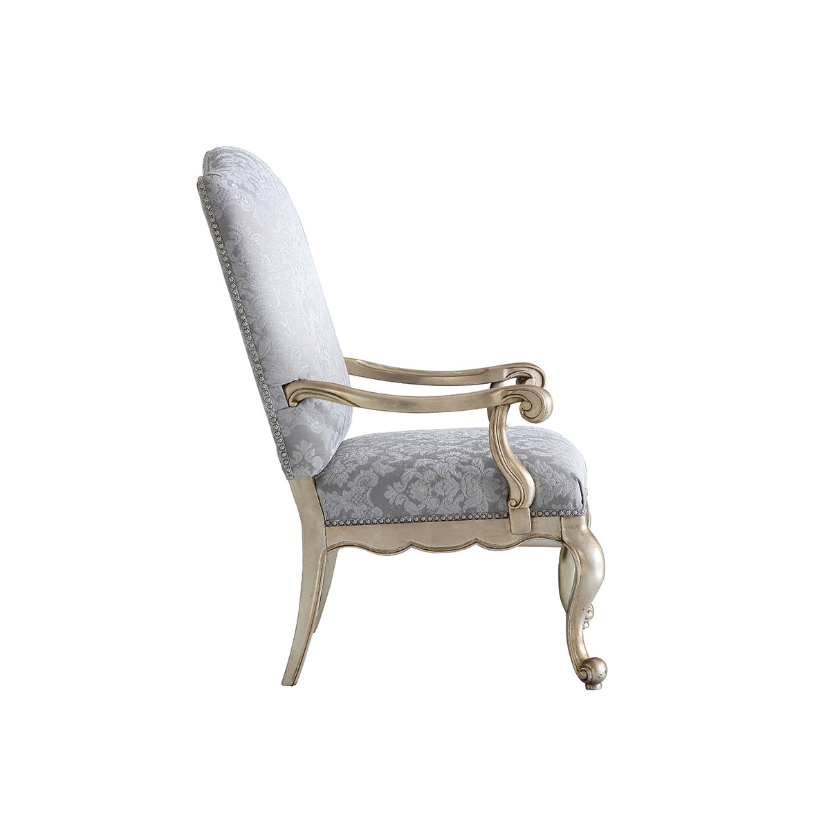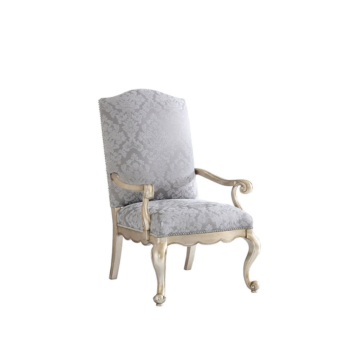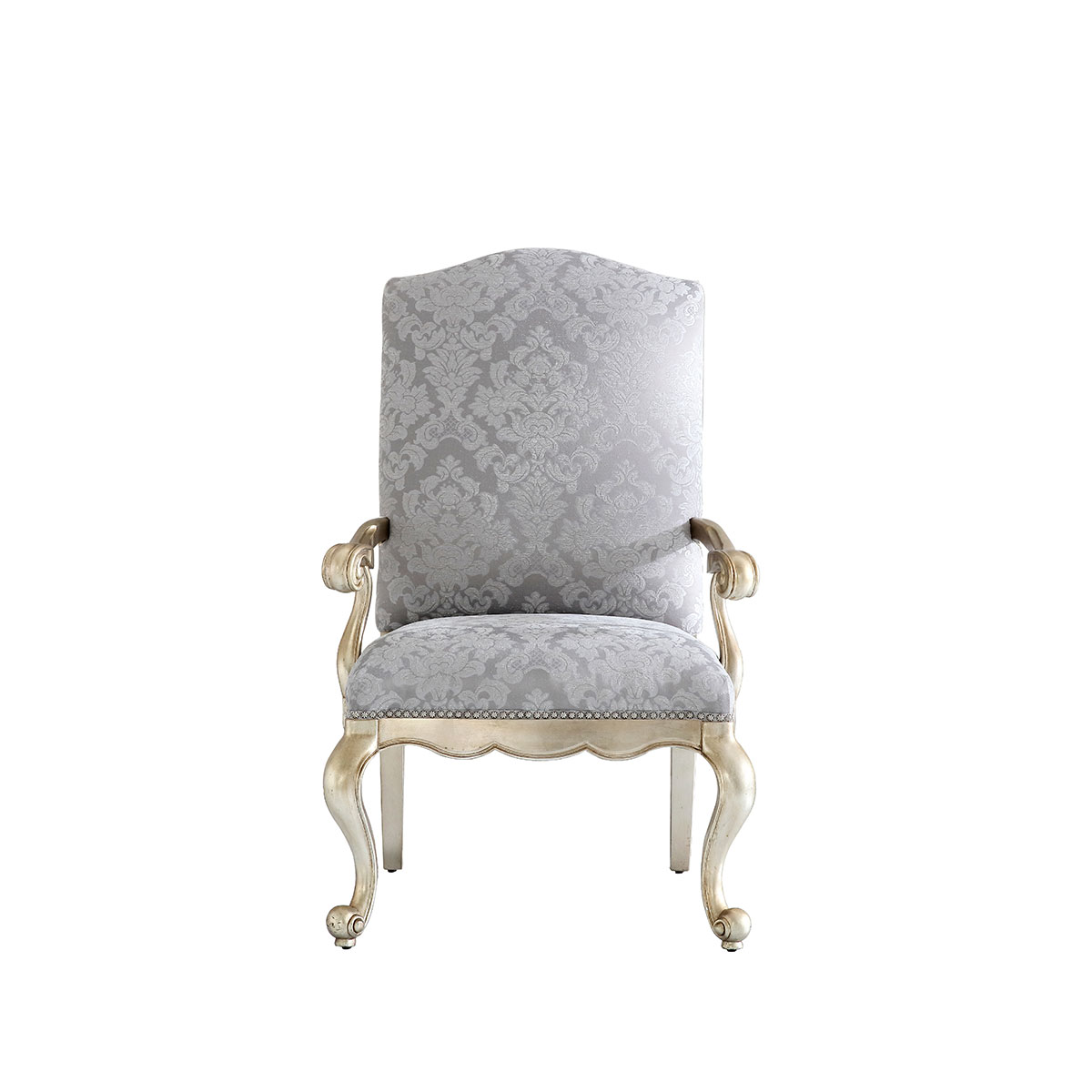 * 一款集合法式元素包括Camelback Silhouette(駝峰輪廓)造型、旋渦形扶手和S形彎腳的高背休閑椅,并配上觸感舒適的布藝和包有豐厚的填充物坐墊和靠背;