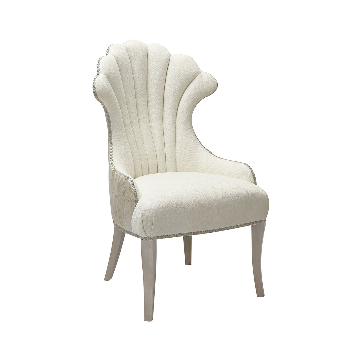 新古典主義去蕪存菁,貝殼狀的椅子富有東方女性的典雅美,造型開放而包容;錢貝圖騰元素,寓意財(cái)運(yùn)源源。將洛可可風(fēng)格中對自然的表達(dá)、動感的弧線和雕刻、貝殼等工藝運(yùn)用得融會貫通。