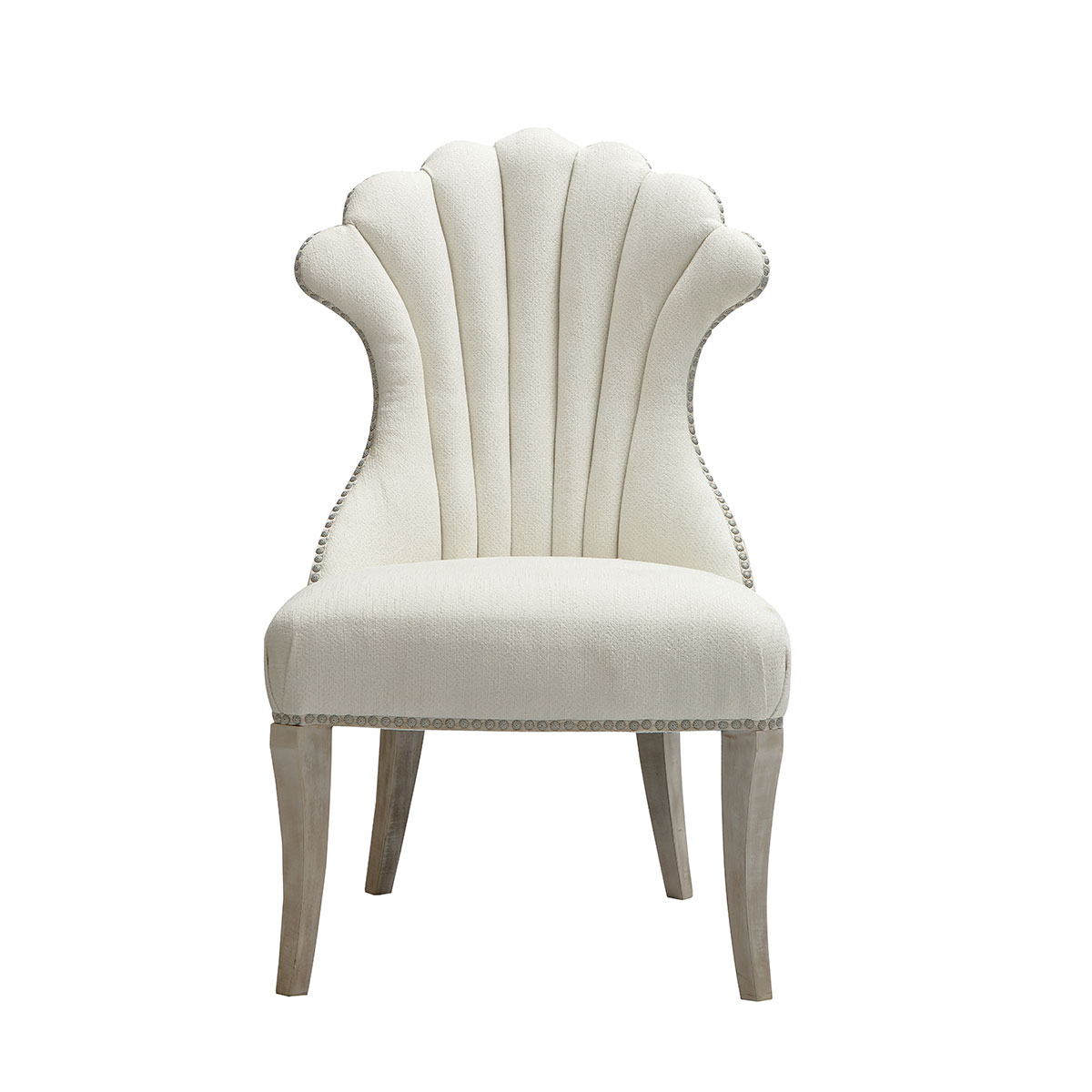 新古典主義去蕪存菁,貝殼狀的椅子富有東方女性的典雅美,造型開放而包容;錢貝圖騰元素,寓意財運源源。將洛可可風格中對自然的表達、動感的弧線和雕刻、貝殼等工藝運用得融會貫通。