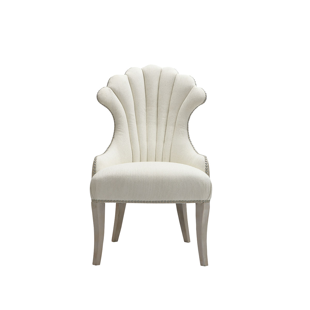 新古典主義去蕪存菁,貝殼狀的椅子富有東方女性的典雅美,造型開放而包容;錢貝圖騰元素,寓意財運源源。將洛可可風(fēng)格中對自然的表達(dá)、動感的弧線和雕刻、貝殼等工藝運用得融會貫通。