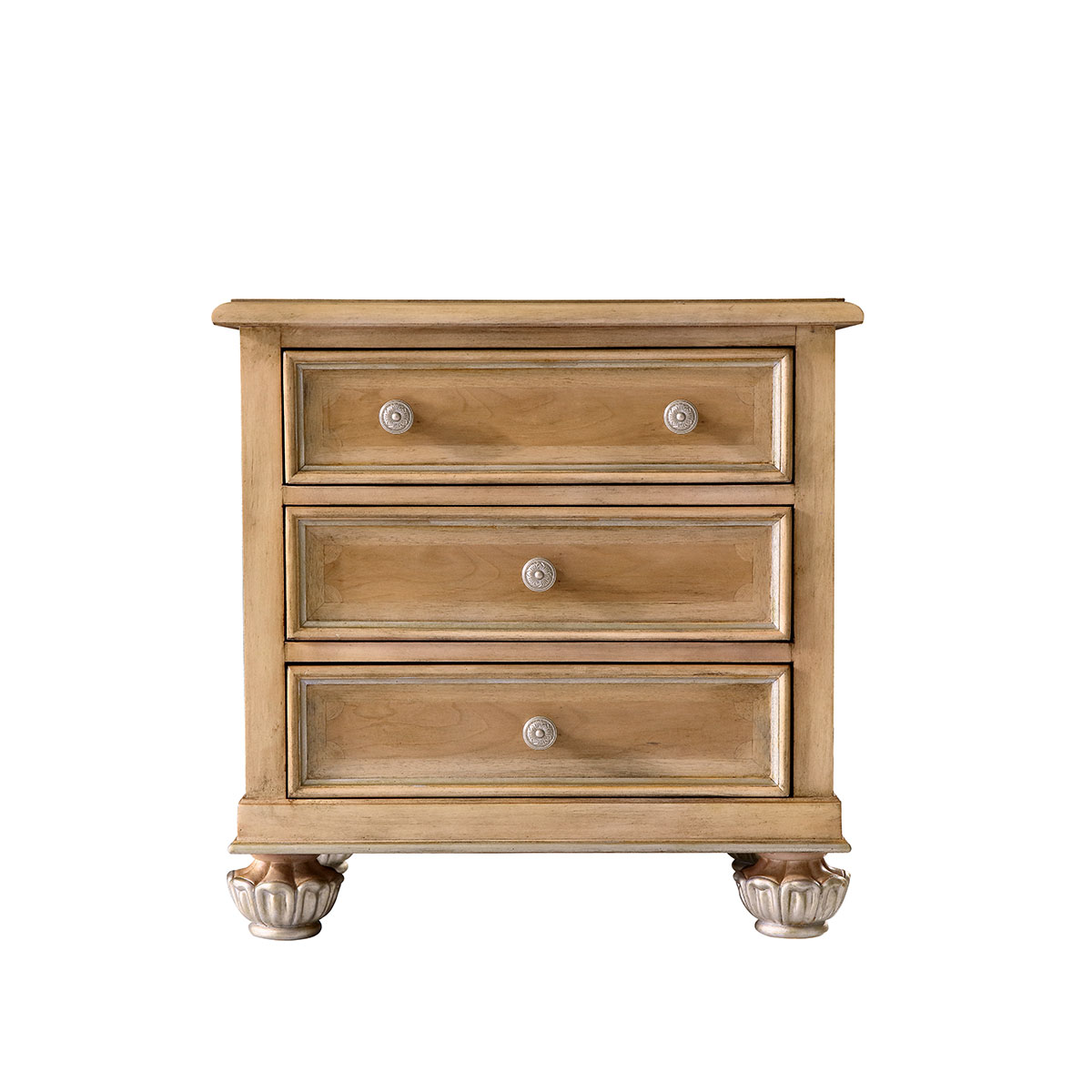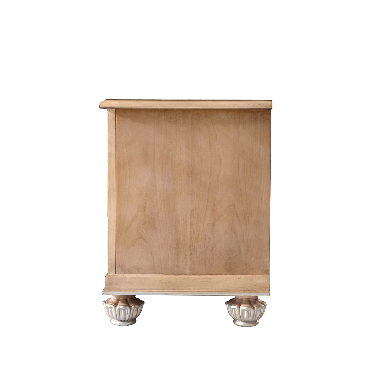 * 手工拼花藤蔓效果,用多種上等木皮拼制而成 * 三個儲物斗,底部采用經(jīng)典的硬木實木滑軌; * 腳腳底部裝有可調(diào)腳釘;