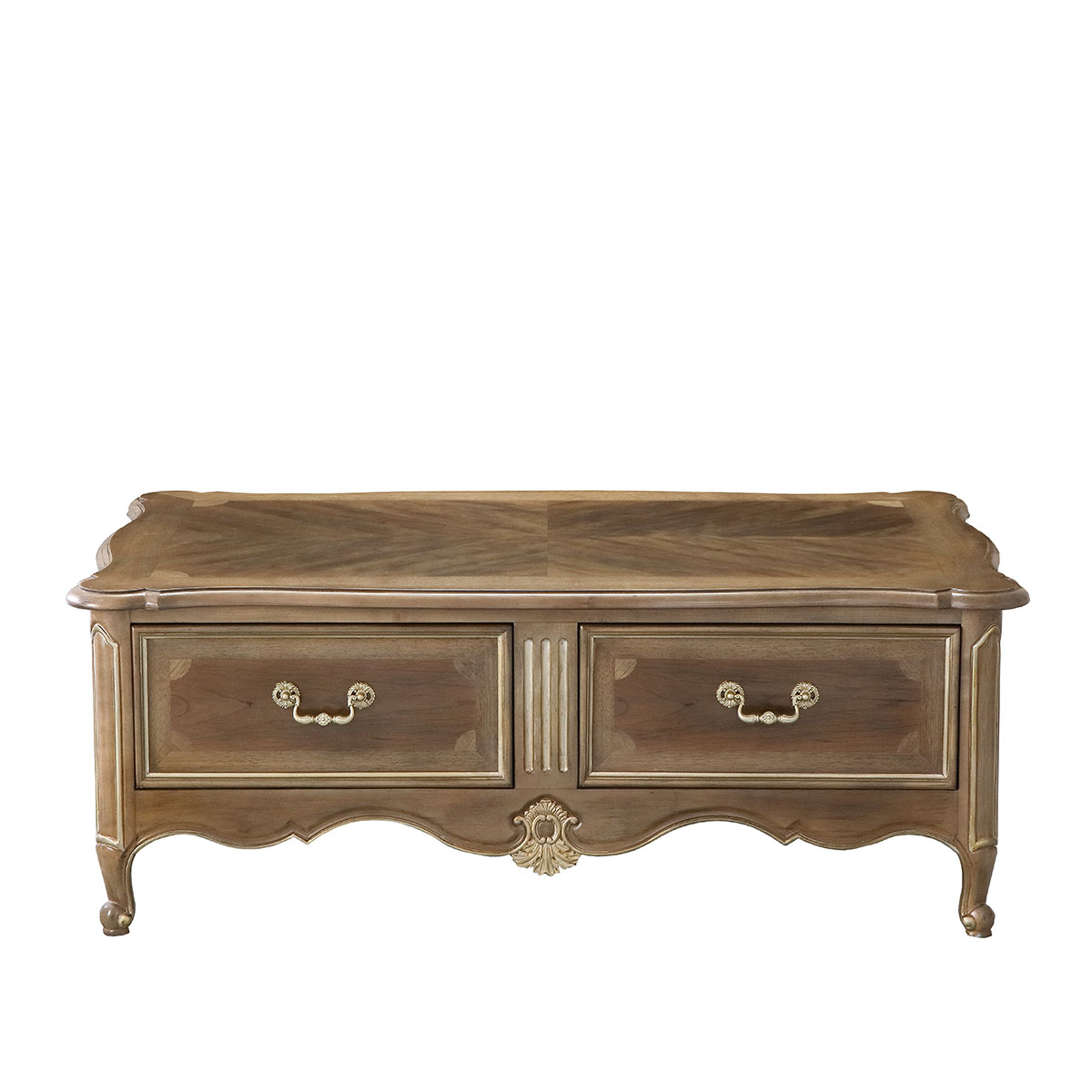 * 葉狀雕刻曲線的裙 * 四個(gè)儲物抽斗 ,其底部采用硬木實(shí)木滑軌; * 腳底部裝有可調(diào)整腳釘.