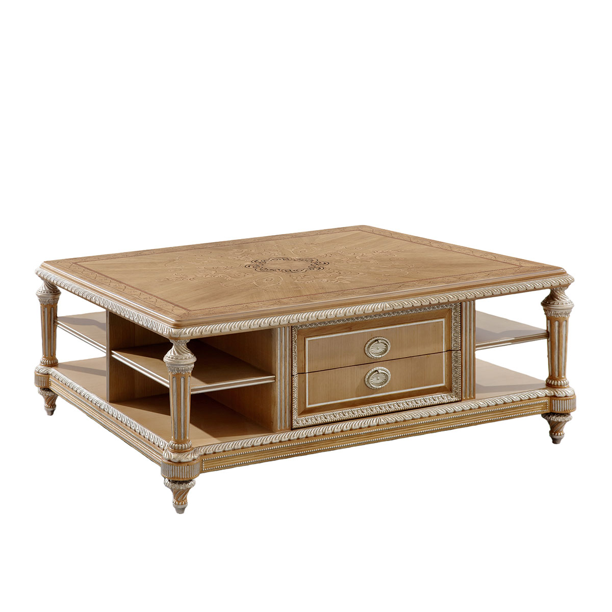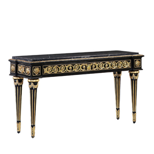 * 帶槽紋的錐形腿象征權力的堅不可摧,英國皇室家具御用的桃花心木飾以珍稀木皮彰顯傳世價值,綺麗華美的花朵雕刻與拼花圖案,則寄托了王室貴族對古典藝術的鐘愛。
