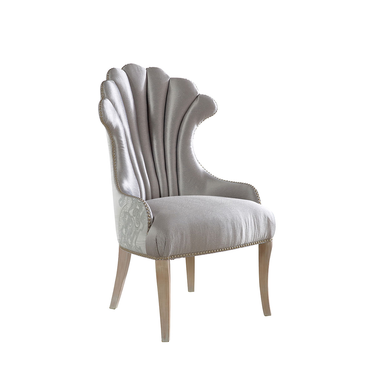 新古典主義去蕪存菁,貝殼狀的椅子富有東方女性的典雅美,造型開放而包容;錢貝圖騰元素,寓意財運源源。將洛可可風格中對自然的表達、動感的弧線和雕刻、貝殼等工藝運用得融會貫通。