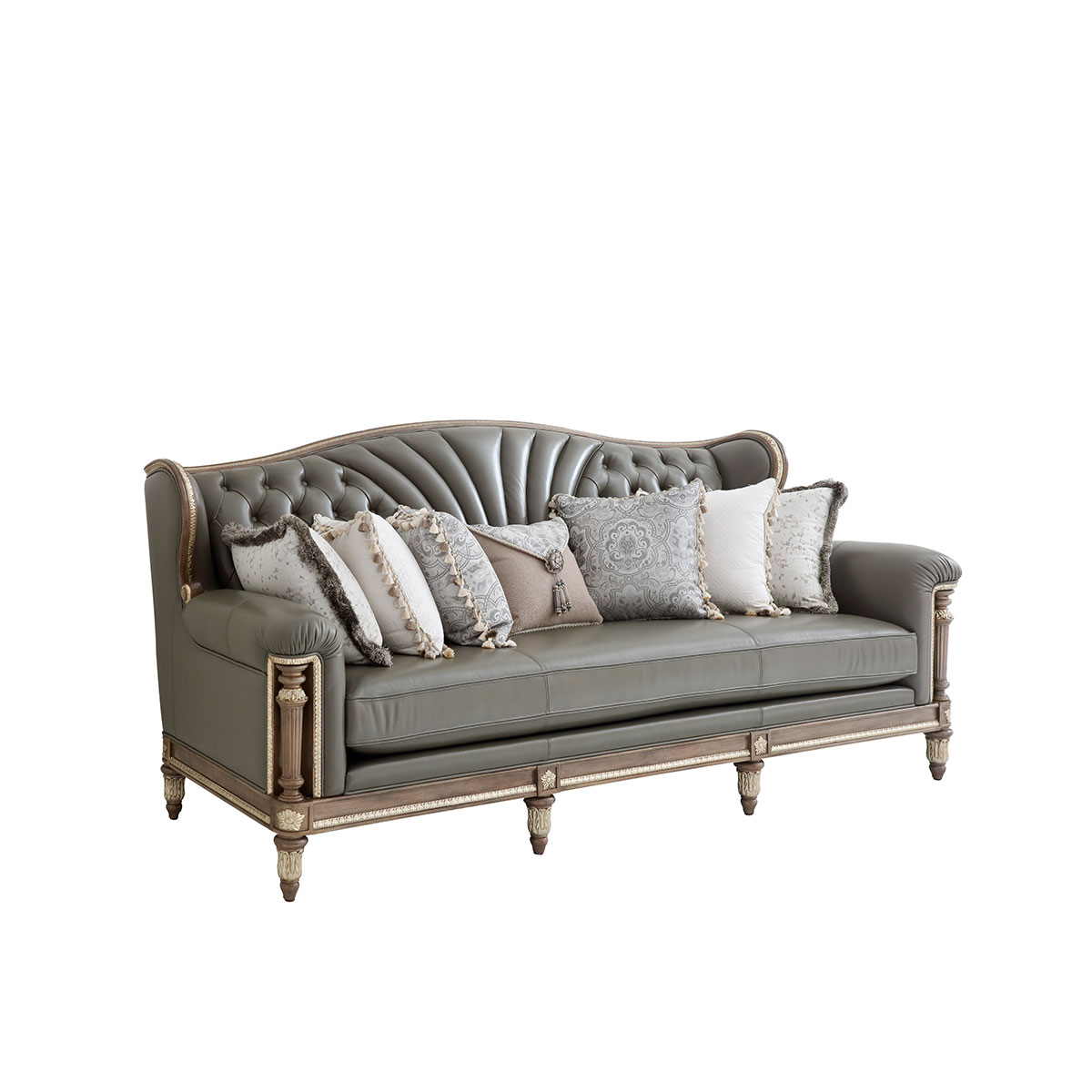 橡膠木+鵝掌楸木+環保人造板+橡木皮+白栓樹瘤、楓木、裝飾線條等木皮貼面+海綿+皮料